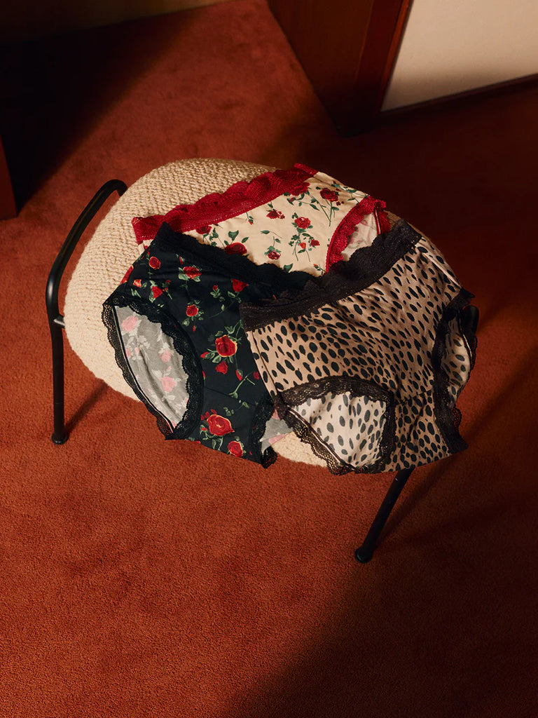 • Includes a RIXO Classic leopard, RIXO Claudia Rose Black, RIXO Antelope Spot and RIXO Claudia Rose Cream High Rise Knicker