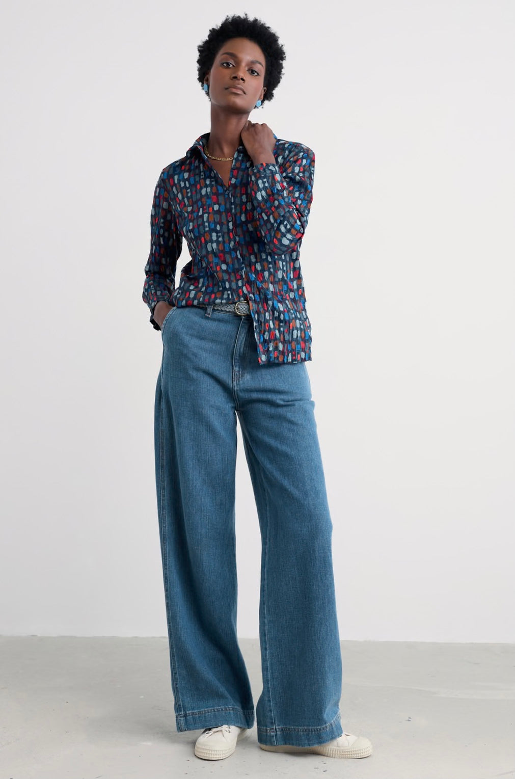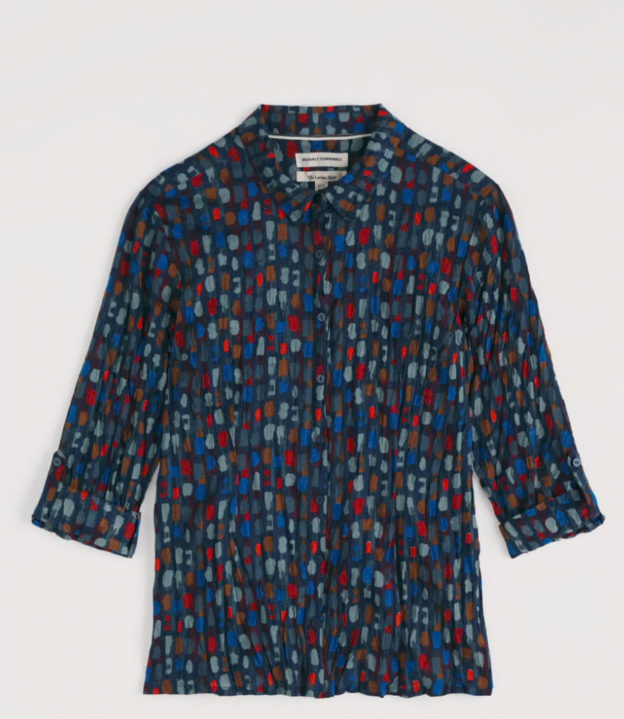 Our Larissa Shirt is a year-round favourite. Made from the softest organic cotton with a casual crinkled appearance, the beauty of this shirt is that it doesn’t need ironing – just wash and twist to keep the crinkle. This semi-fitted style is easy-to-style and comfortable, with long sleeves and button loops so you can roll up the cuffs to change your look. Each season, it showcases some of our most-loved prints, created by our talented textile designers.