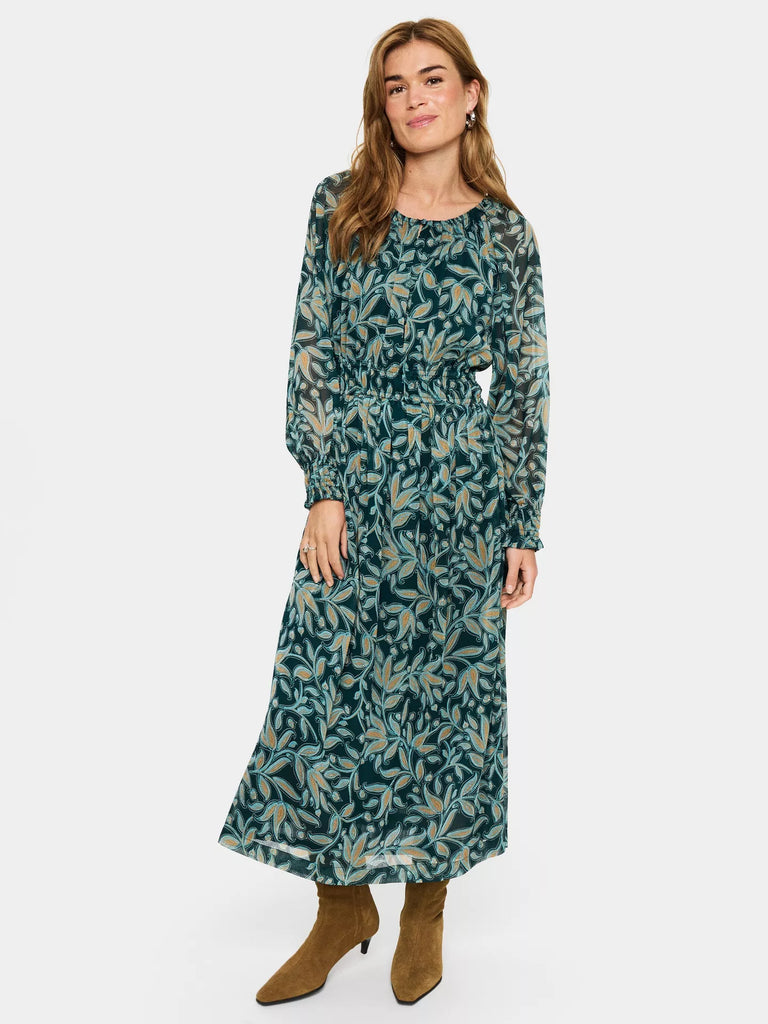 Step into the season with the MaxineSZ Dress by Saint Tropez—a woven wonder that blends effortless charm with eco-conscious flair. Featuring the lush Pine Autumn Floral print, this dress is a celebration of nature’s palette, reimagined for modern femininity.