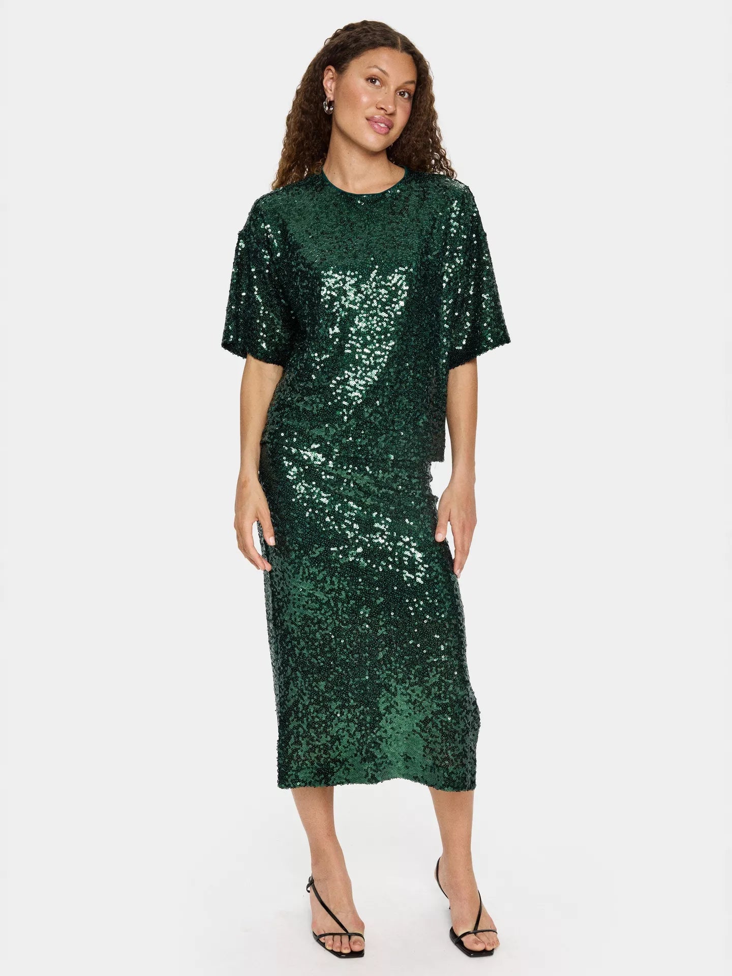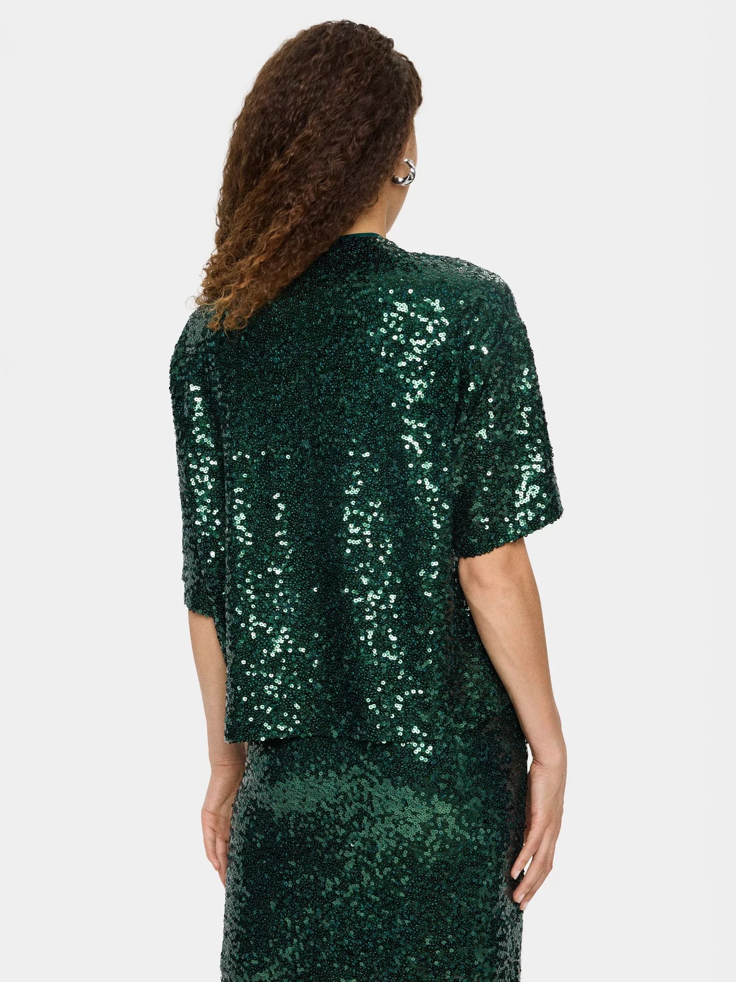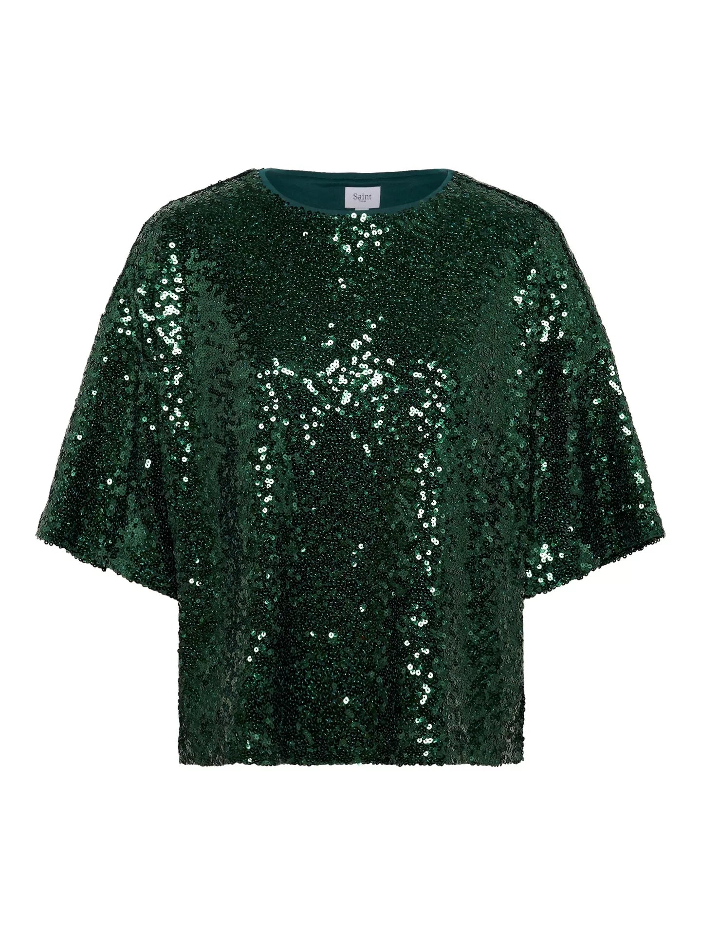 An effortless blouse from Saint Tropez. Featuring a crew neck and elbow length sleeves, its twinkly sequin embellishment sparks interest. The ultimate party-ready piece.