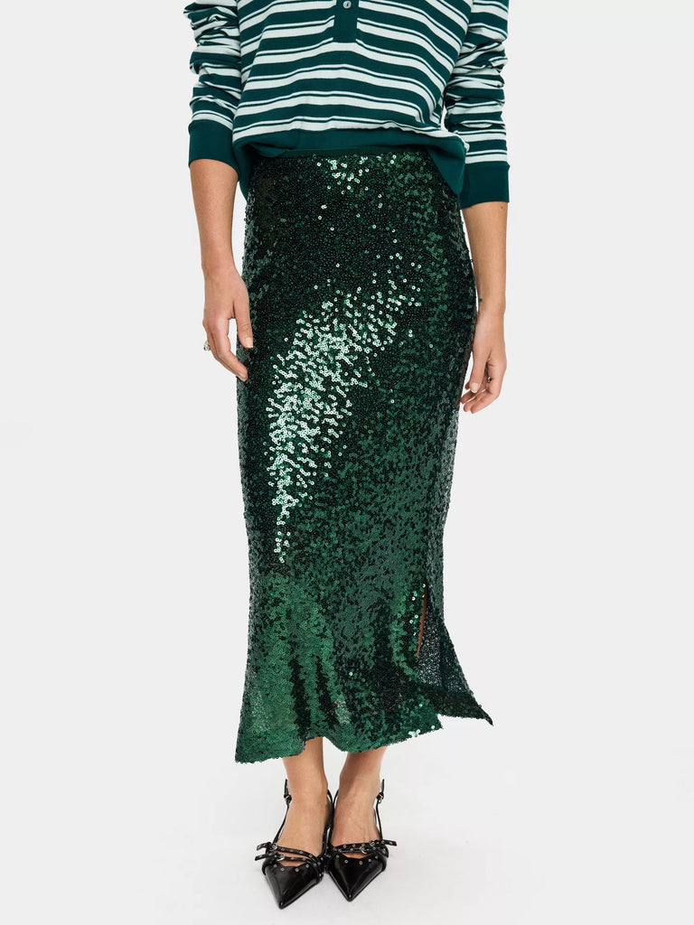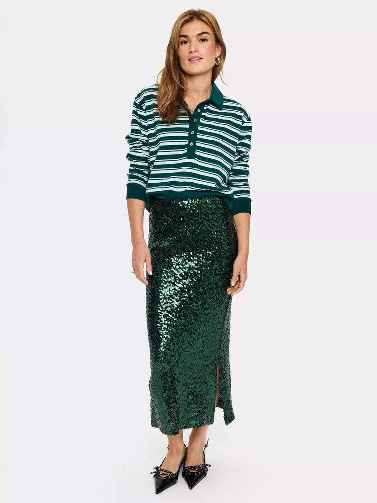 Falling to a mid-length sweep, pull on this skirt by Saint Tropez. Cut to a clean A-line, it's finished with sparkling embellishment. Fastens smoothly with a zip.