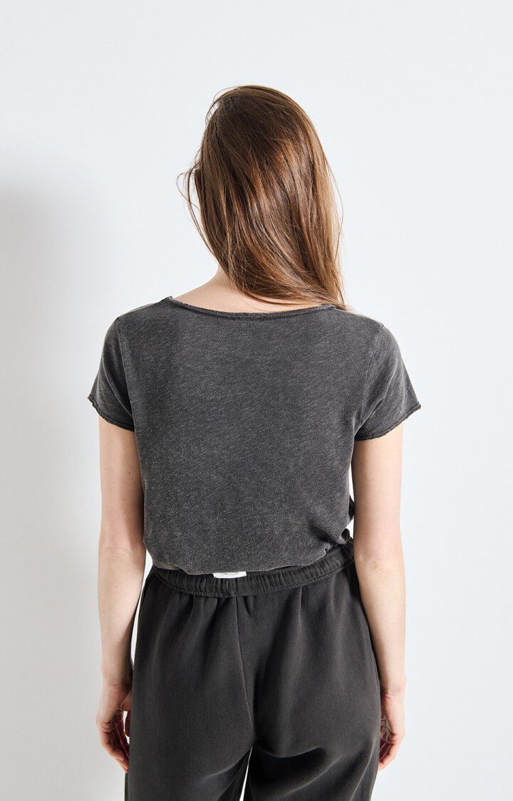 The Sonoma women's V-neck T-shirt, an iconic piece from the American Vintage range, is a basic item made from thick, textured slub cotton, brushed on the inside for maximum comfort, it is suitable for all occasions and can be worn easily in any season thanks to its feminine neckline and timeless cut.
