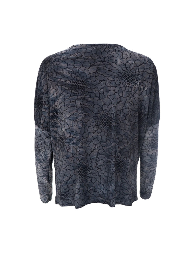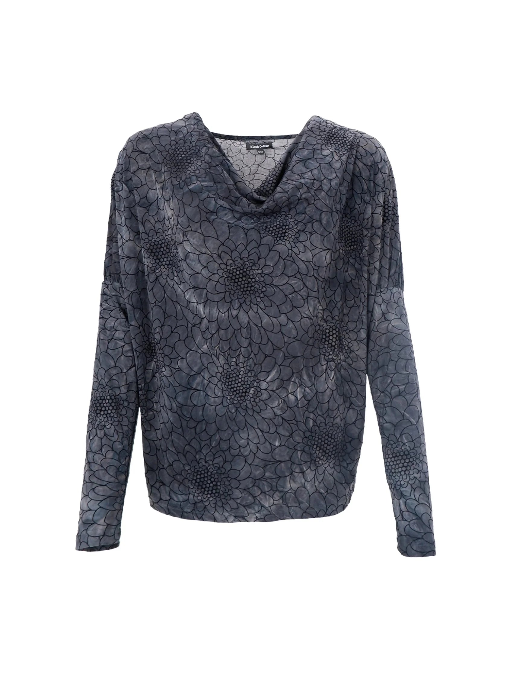 Light and elegant blouse with long sleeves, a subtle floral pattern and a beautiful draped neckline. The blouse is perfect for adding a feminine touch to festive occasions.