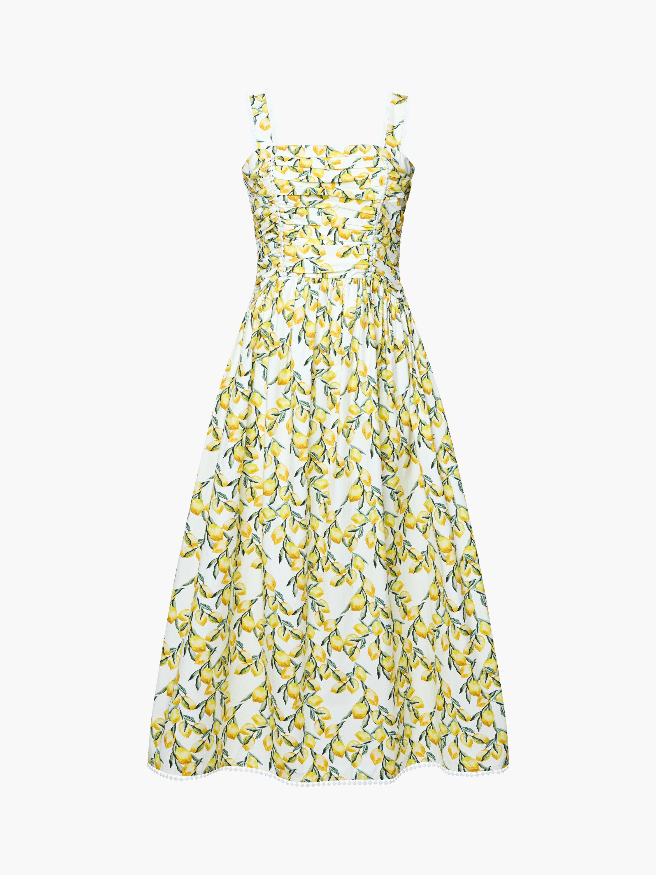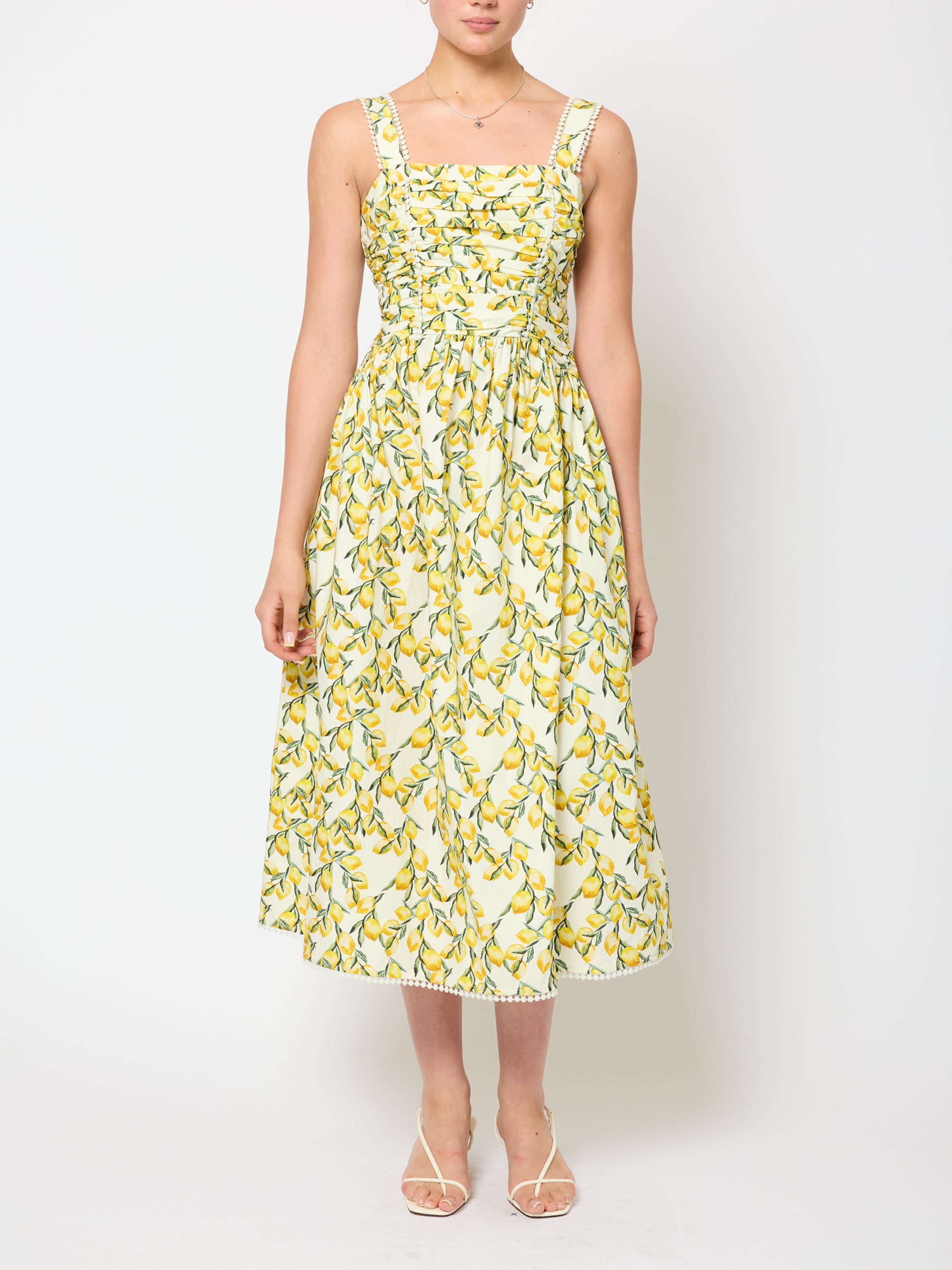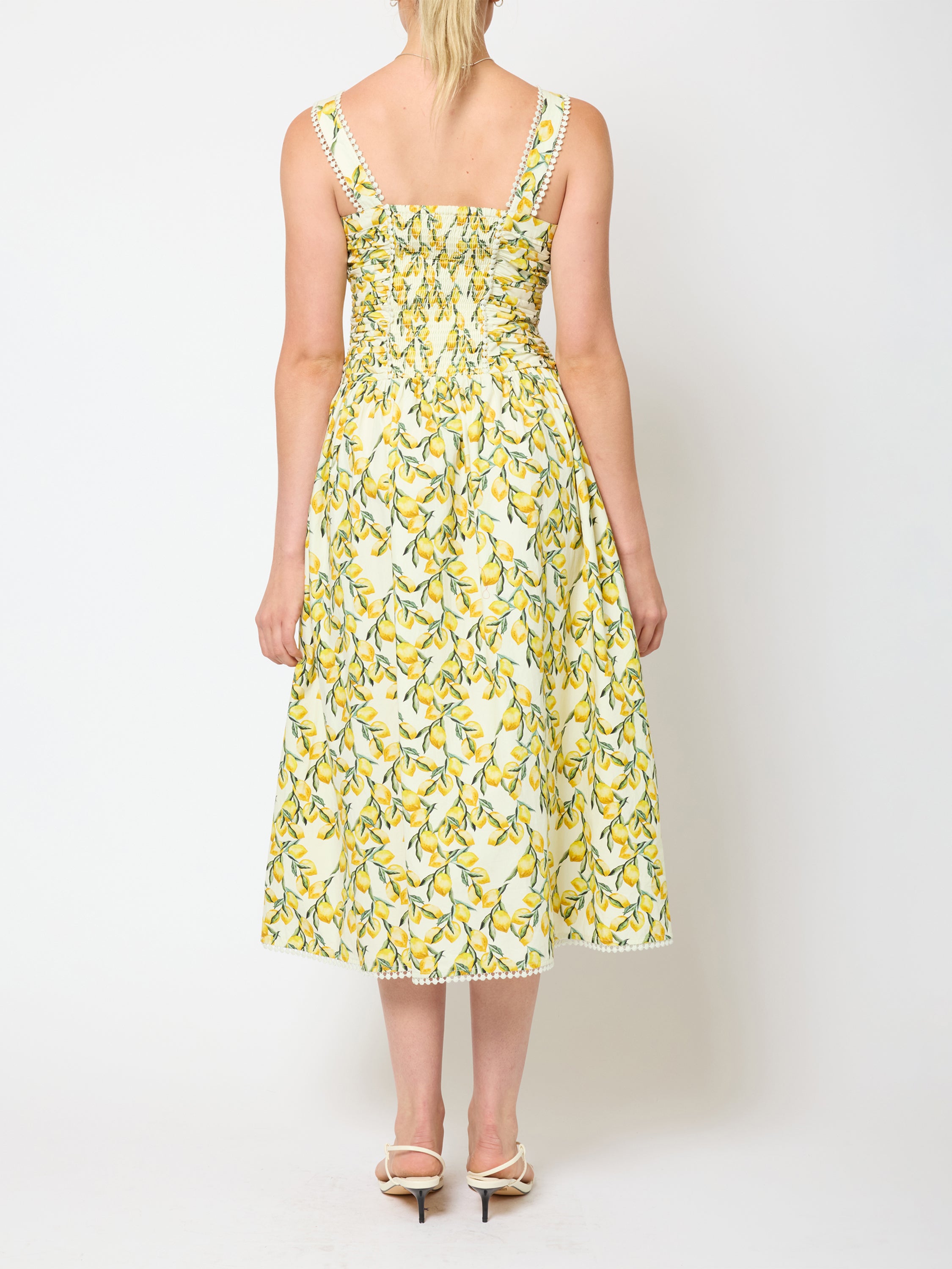 Lemon print dress with elasticated smocked back