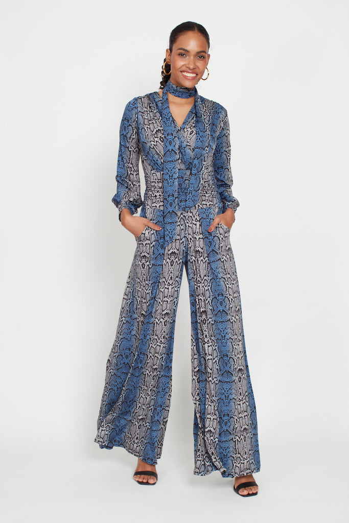 The Onjenu Sharon is our much loved jumpsuit that comes with a belt that can be used either to enhance the waist or as a neck-scarf. This is a super flattering cut that is a very popular style for so many women. The Sharon Jumpsuit looks great with heels or with trainers.