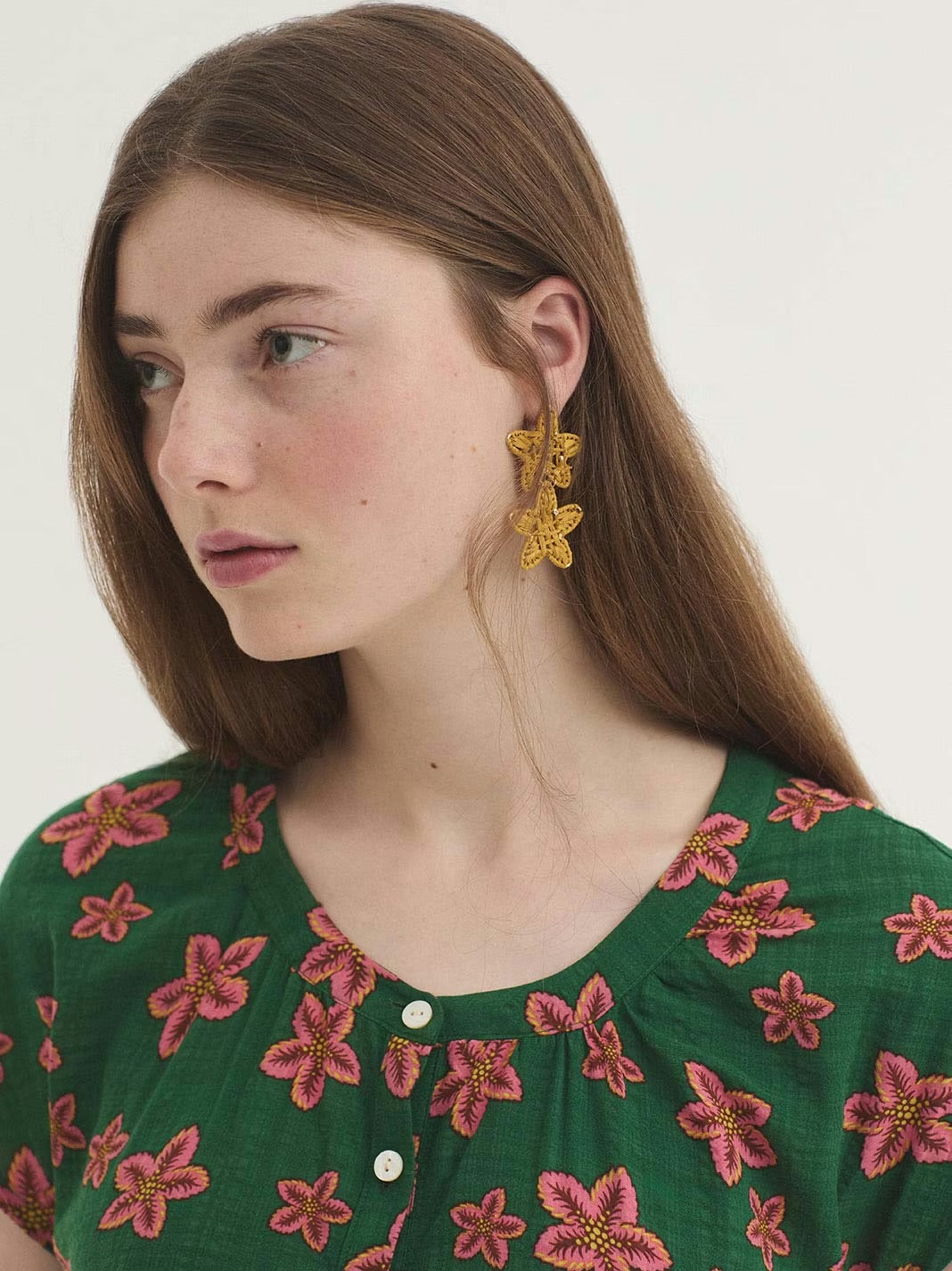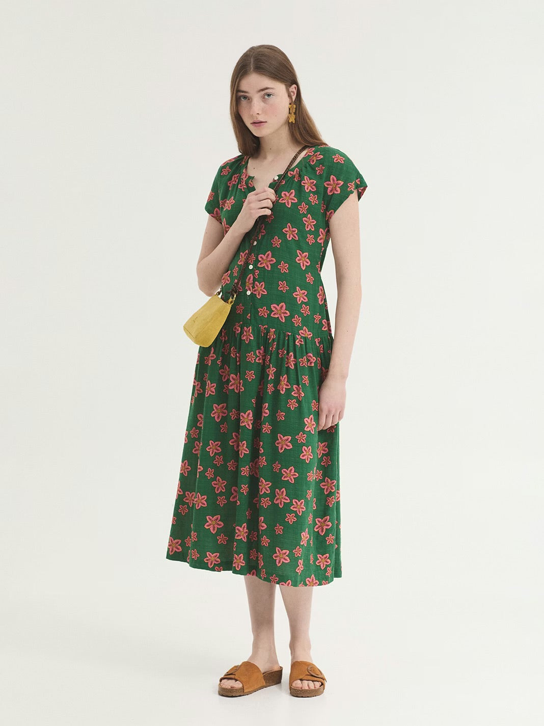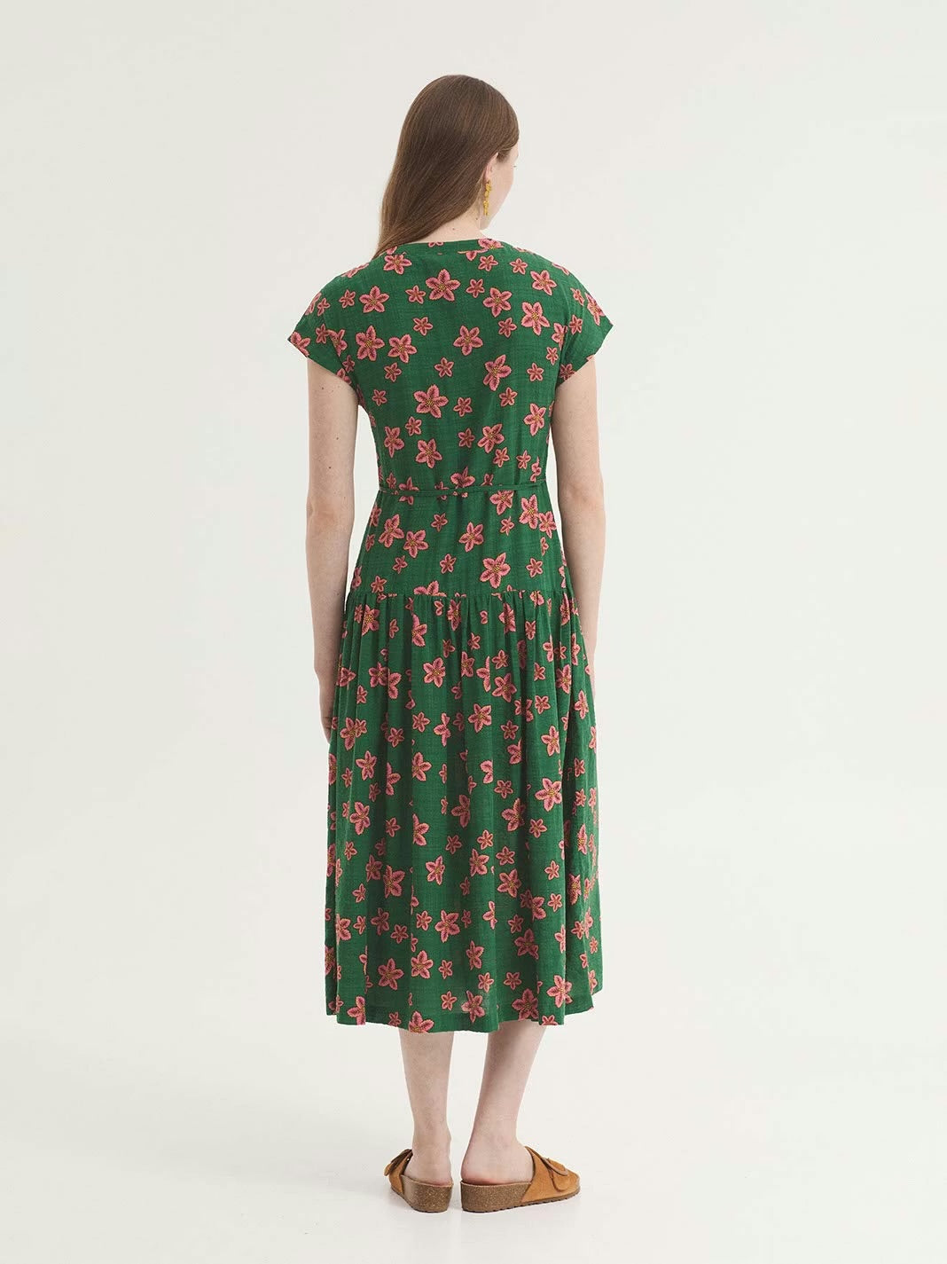 Star Flowers Print Dress- Shiny Green