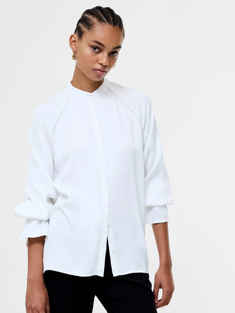 Candice Satin Pearl Trim Shirt - Winter White