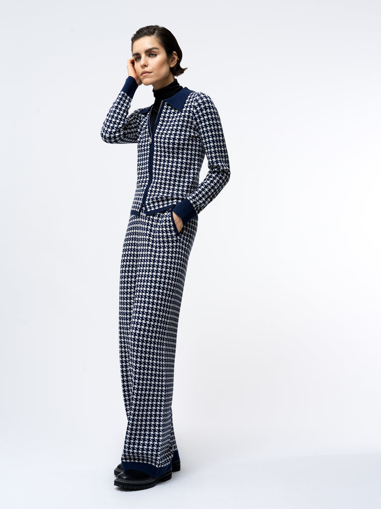 Gloria Jacquard Knit Trouser - Navy