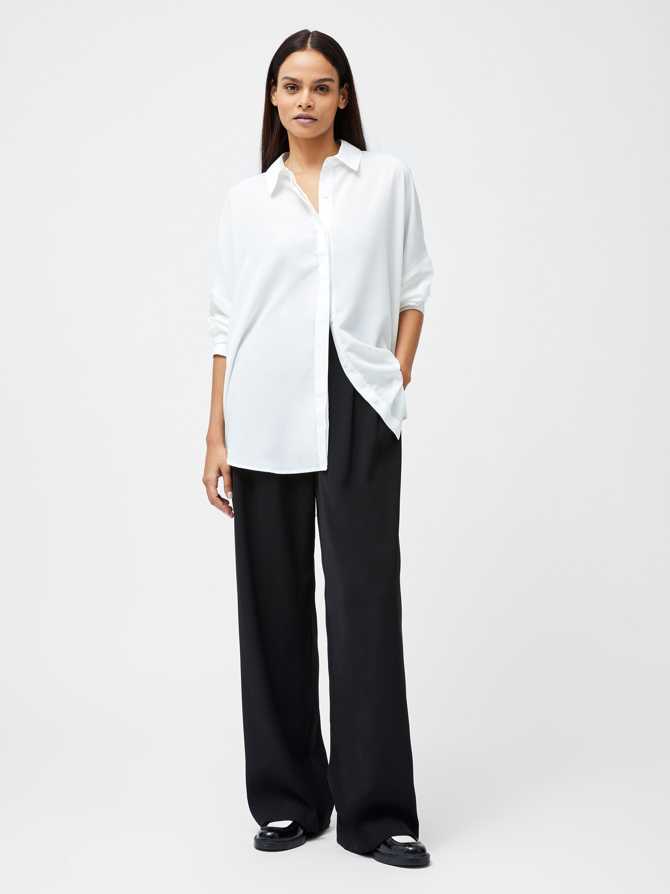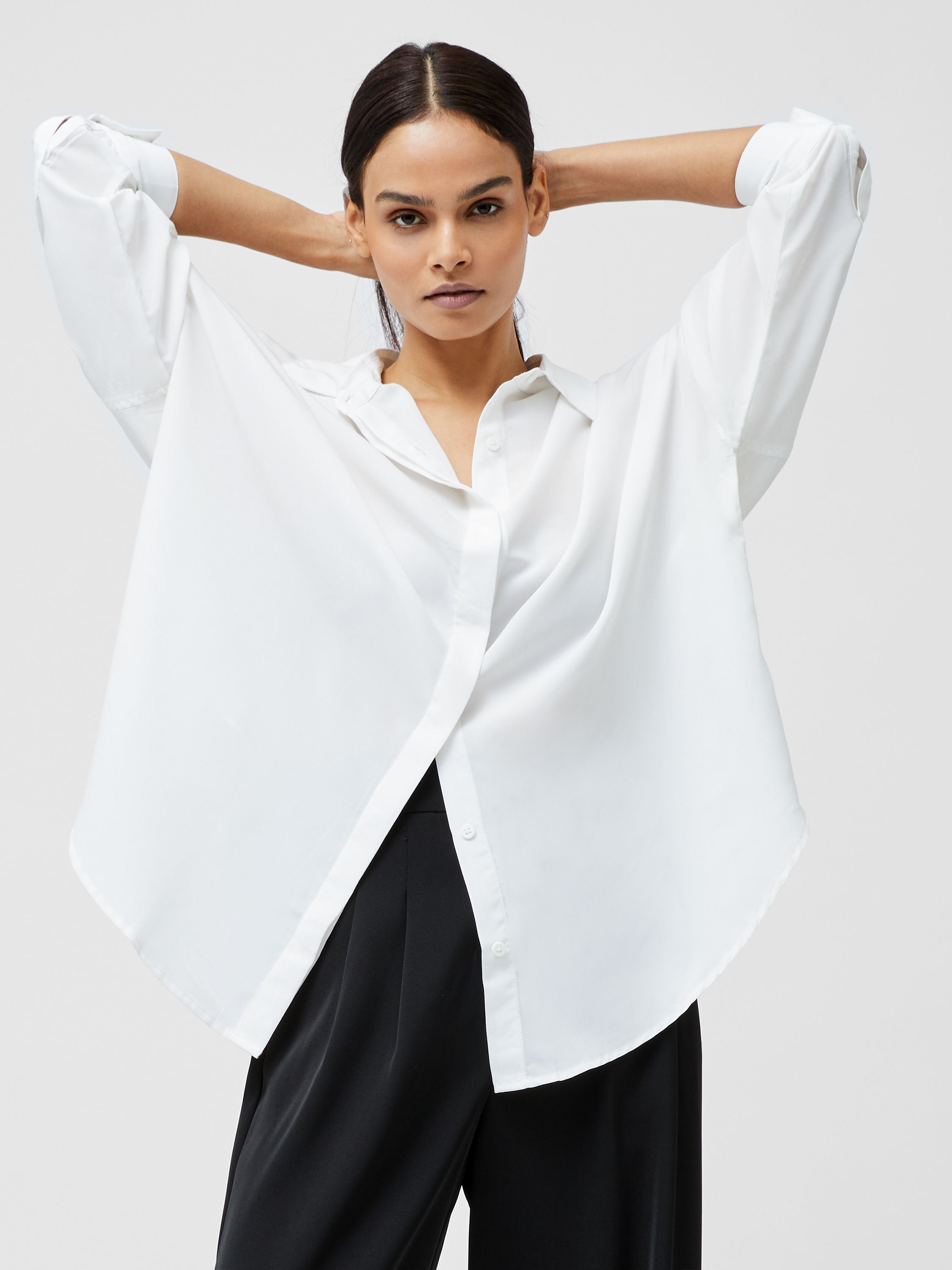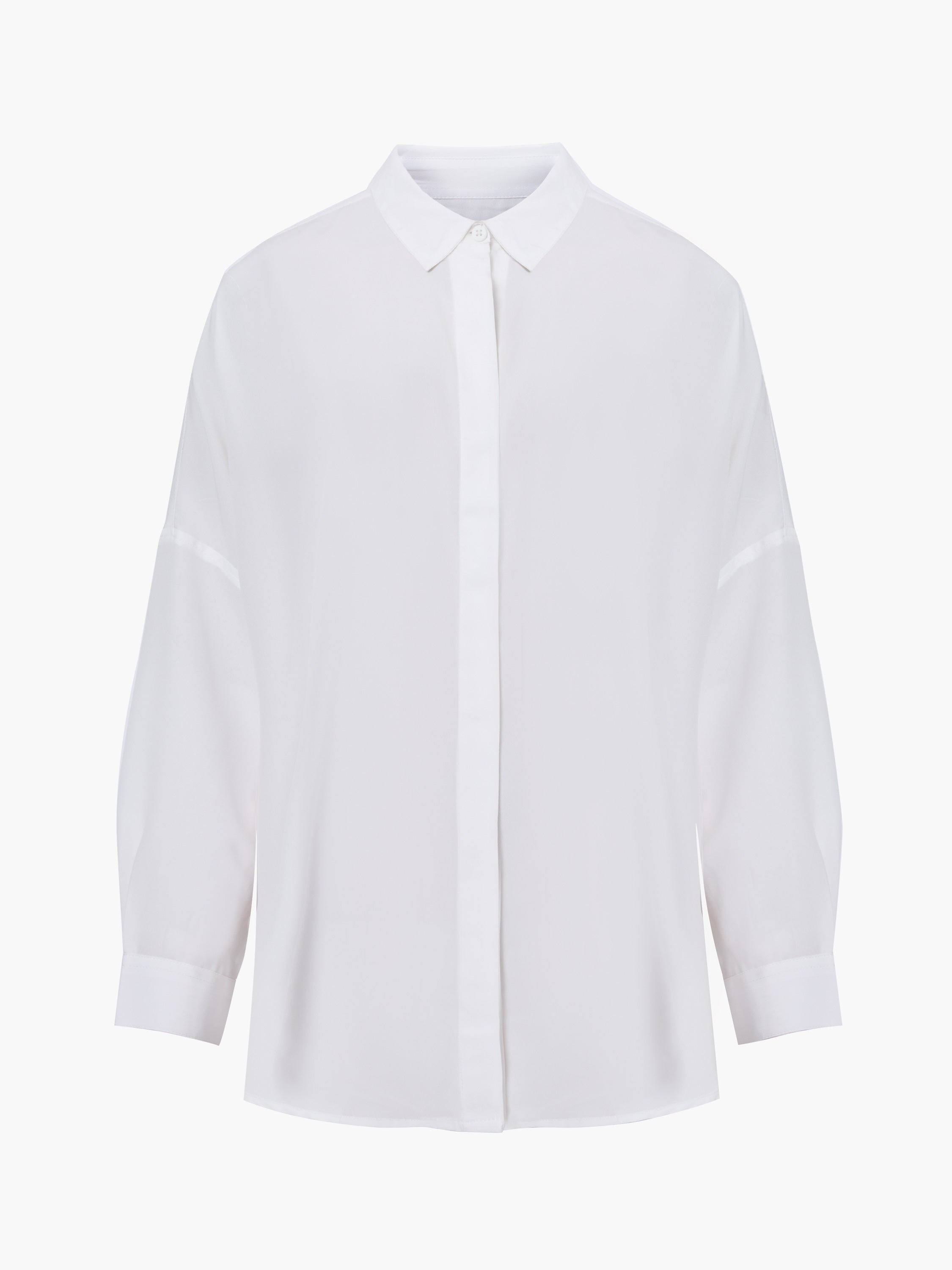 Elegant everyday shirting. Caprina Recycled Crepe Long Sleeve Button Shirt is a classic, presenting its traditional collar alongside concealed front buttons whilst framed by long sleeves. Consider this a workwear and weekend hero alike.
