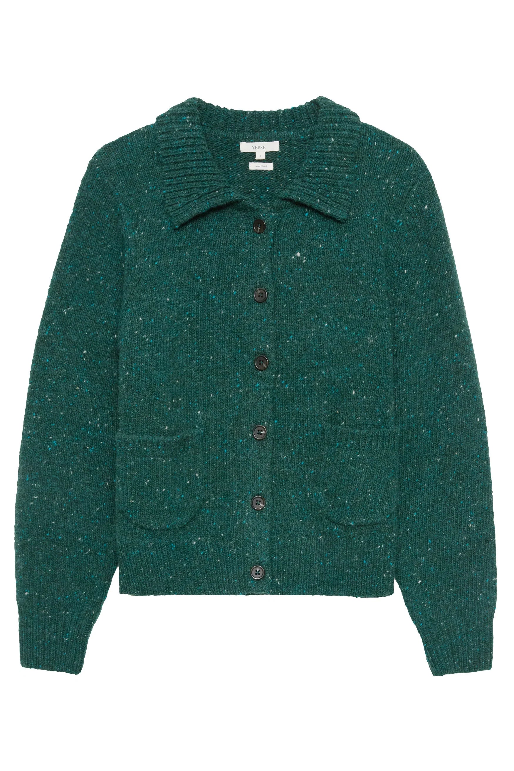 Crafted in a green colour, that is fresh and has speckles of blue and cream subtly running throughout. Layer with and wear this cardigan lots, it's a great and timeless everyday piece for the season ahead.
