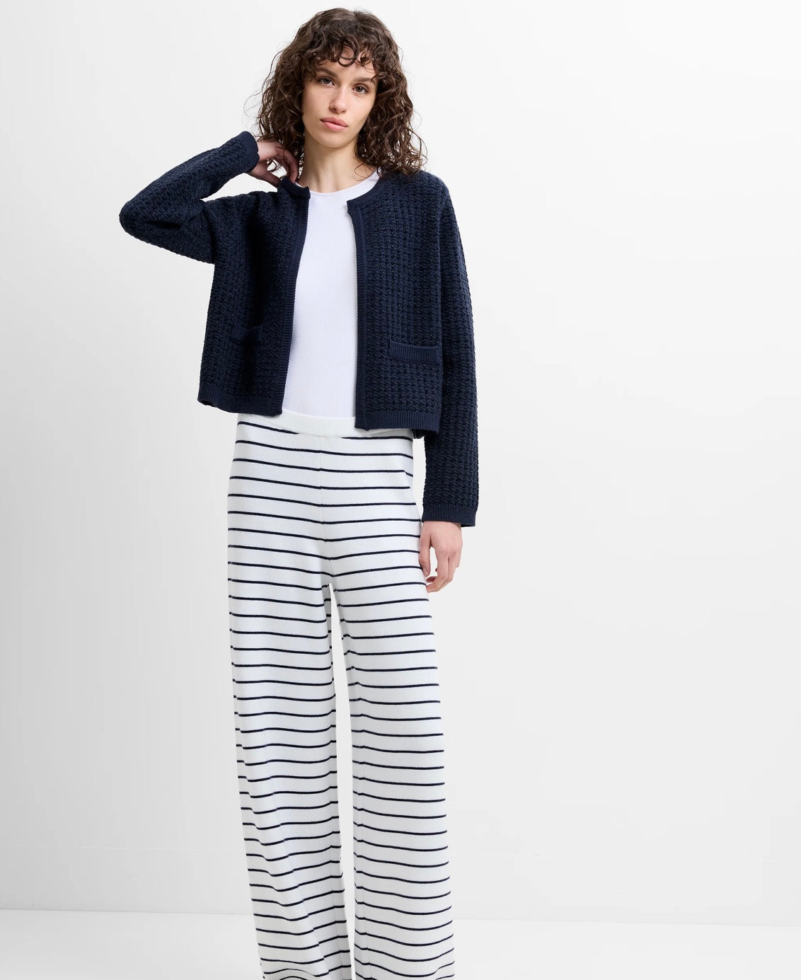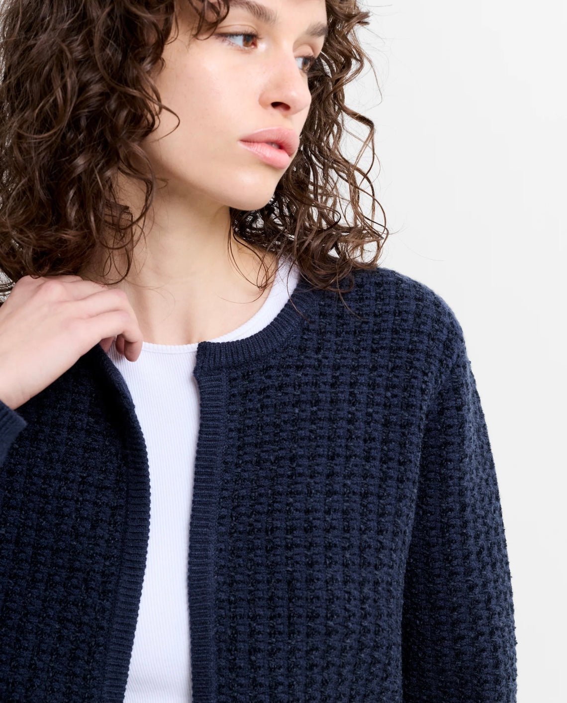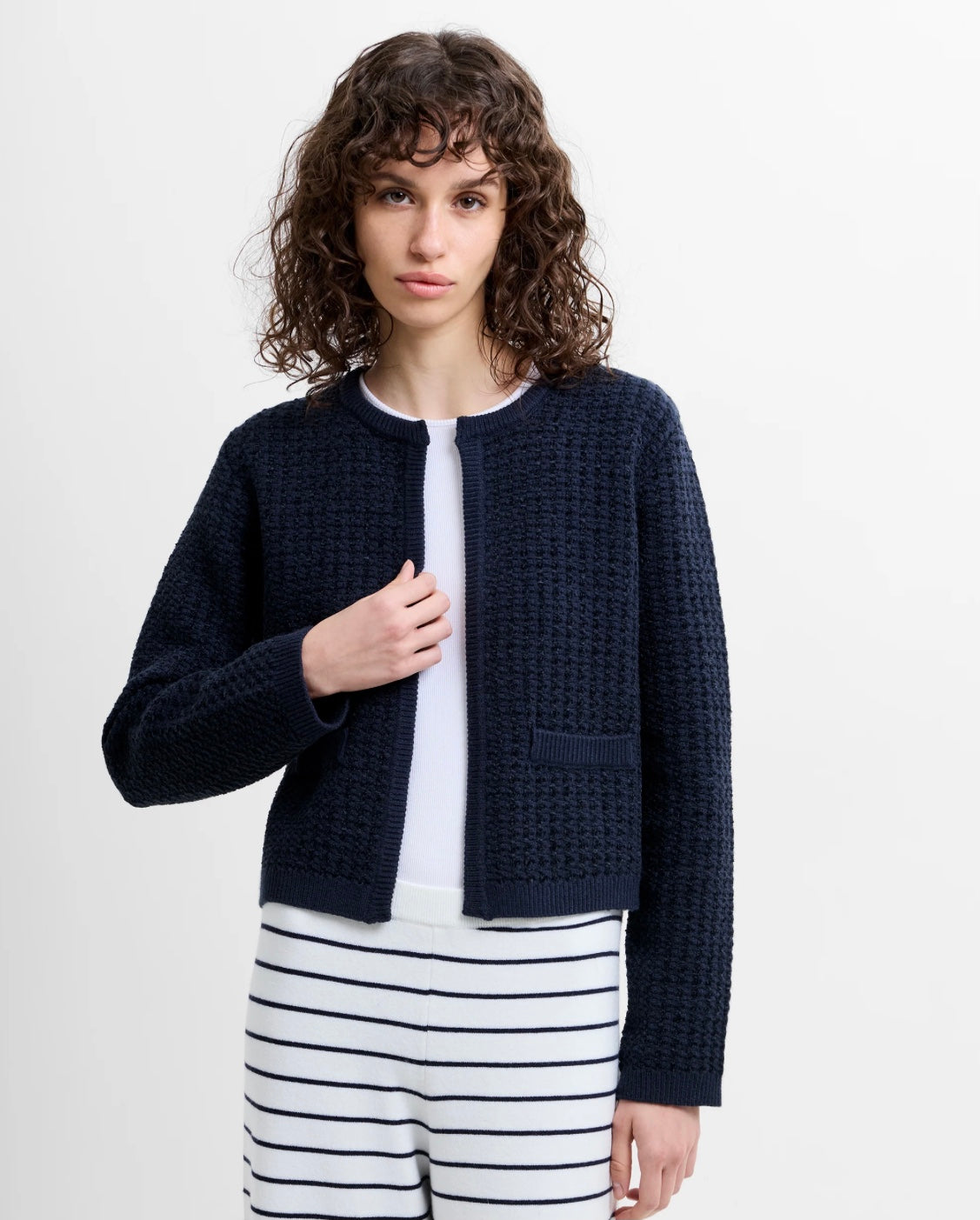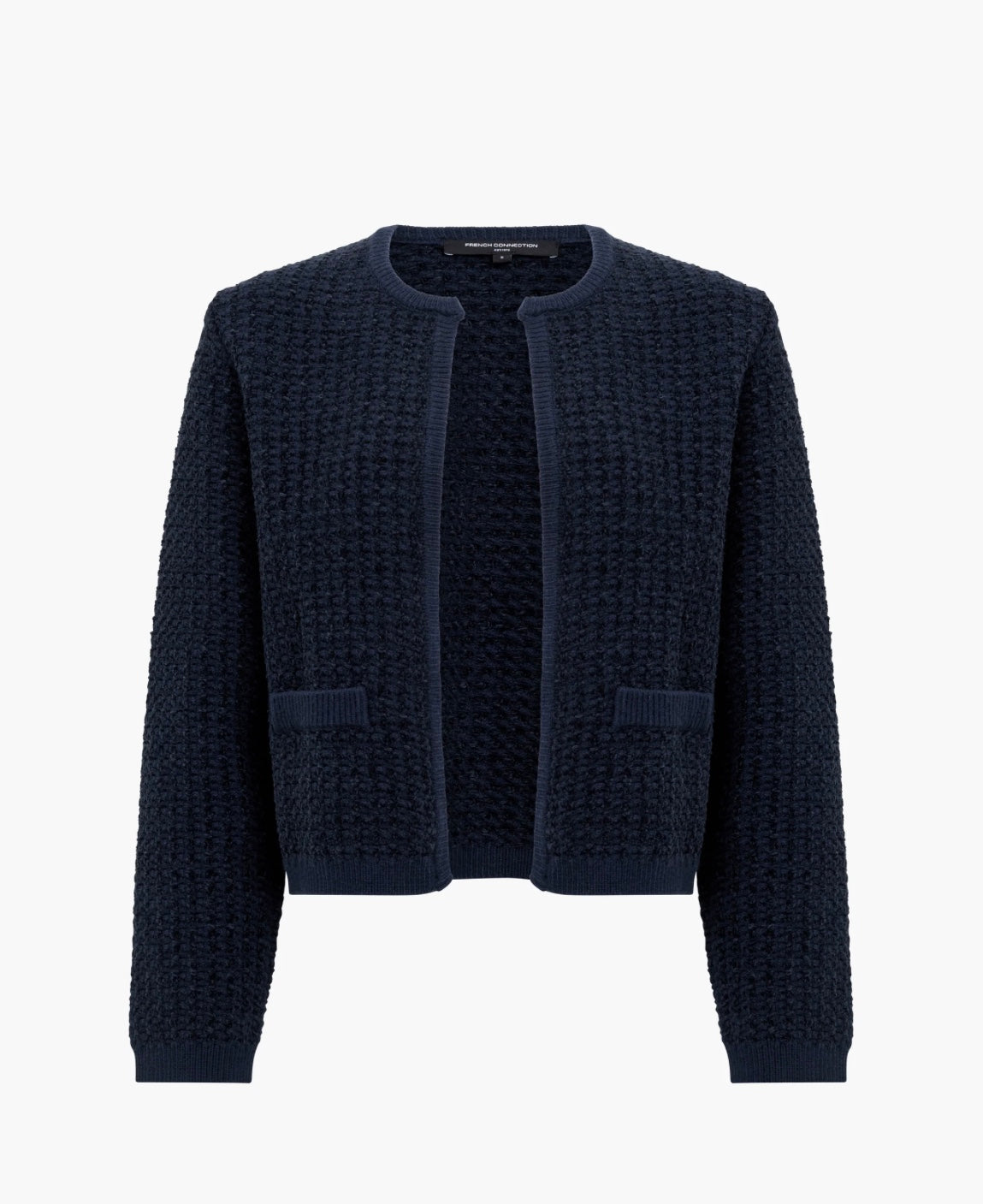 Our Noar Moss Stitch Knit Cardigan ticks every box. In a cosy moss stitch knit, this layer offers an open design with long sleeves, faux pockets and ribbed trims.