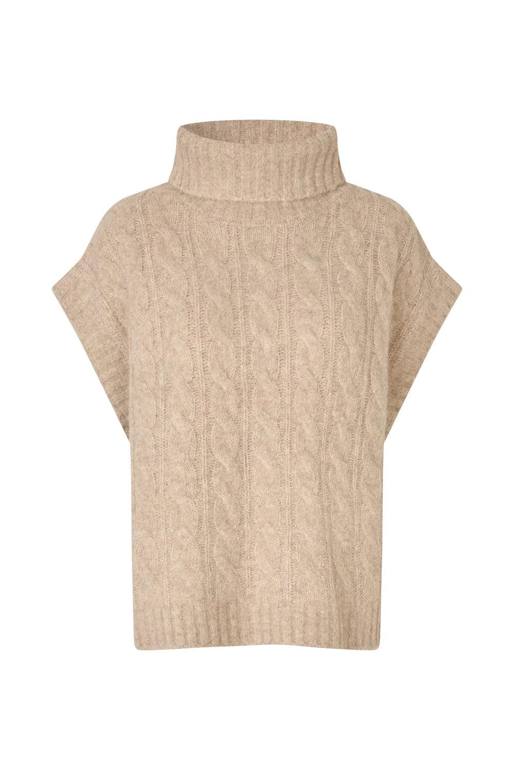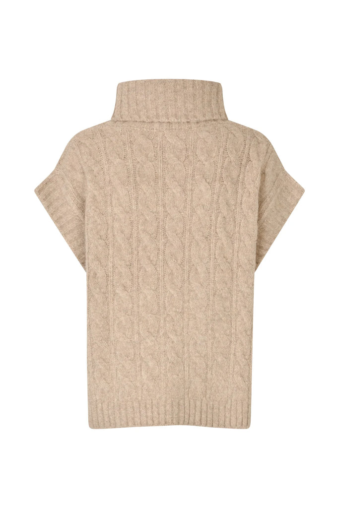 The FresnoLL vest is a soft knit with a classic cable pattern and a high neck, and features a relaxed fit with ribbed edges at the hem and armholes. The perfect layering piece for autumn looks.