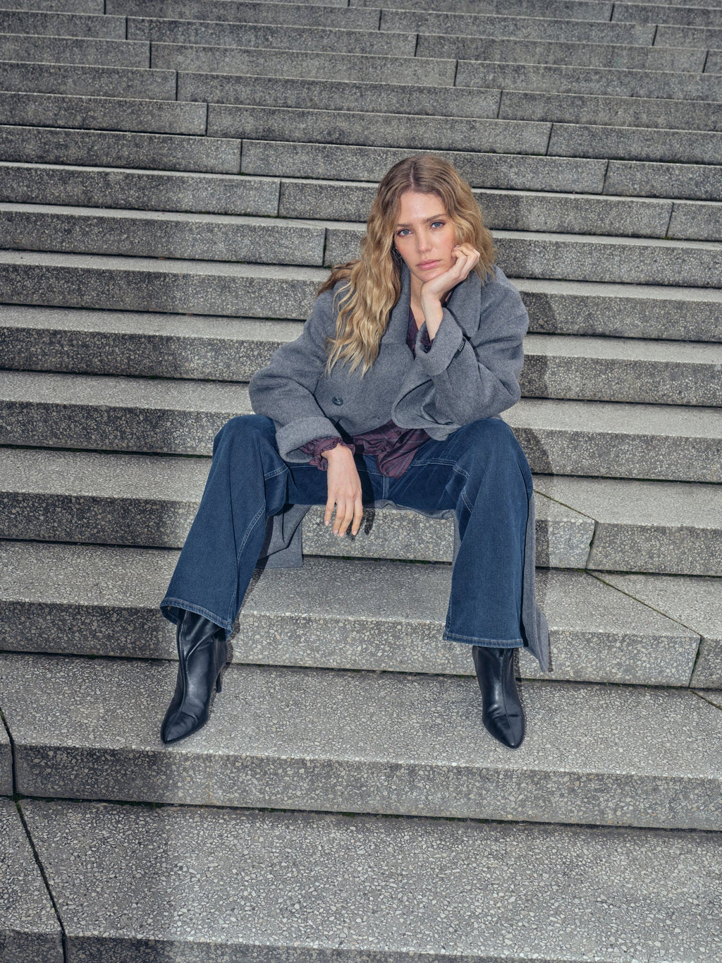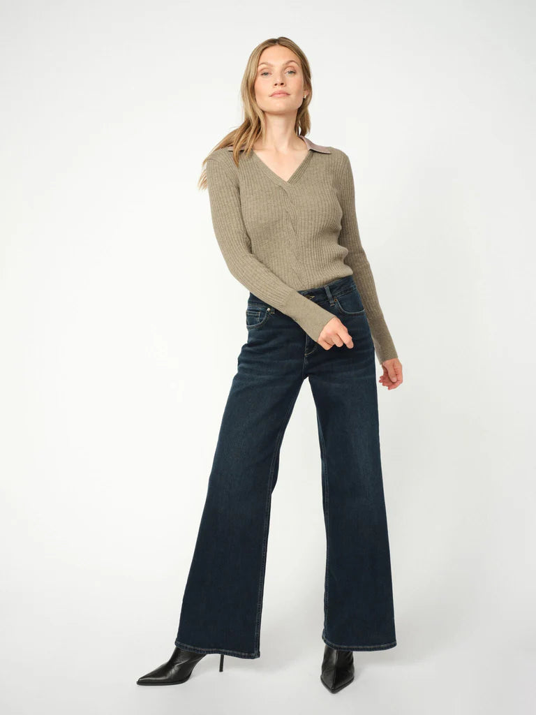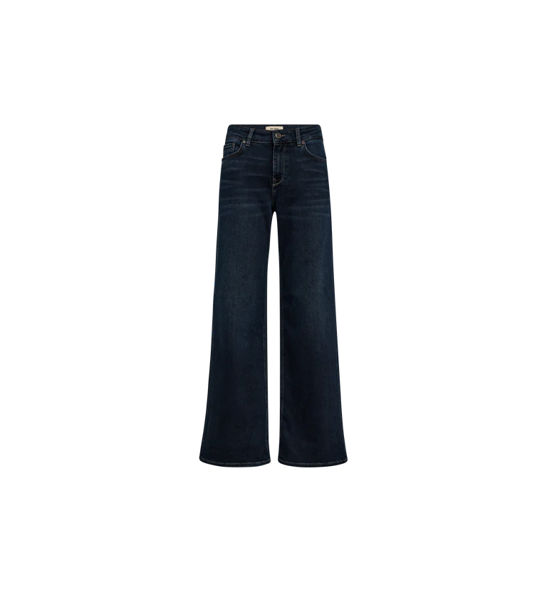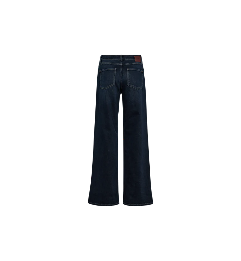 Introducing wide-legged jeans in a stylish blue wash with a high-rise fit. Finished with leather detailing at the coin pocket. Pair casually with a chunky knitwear or dress up with a Vilagallo blouse for a night out!