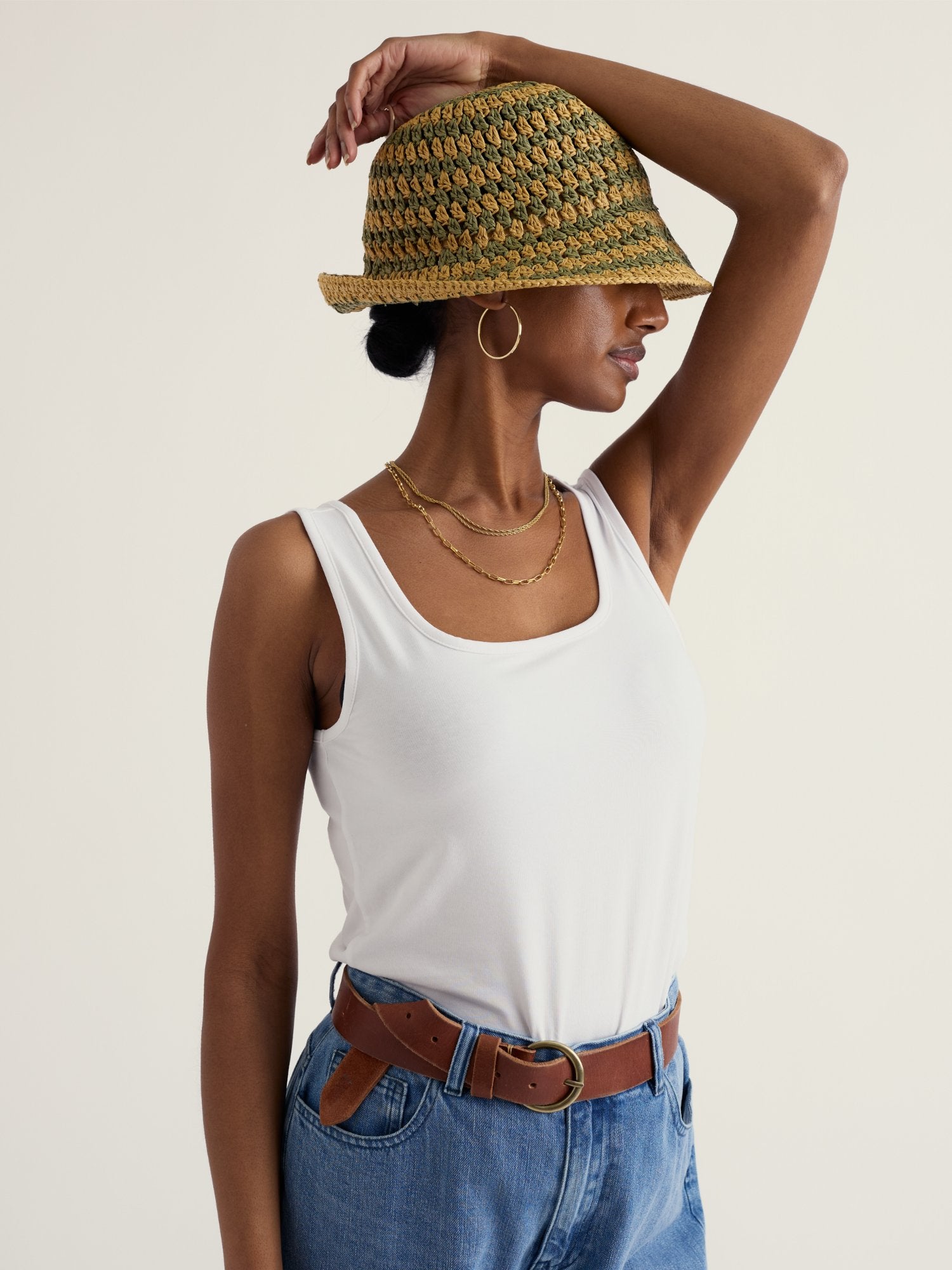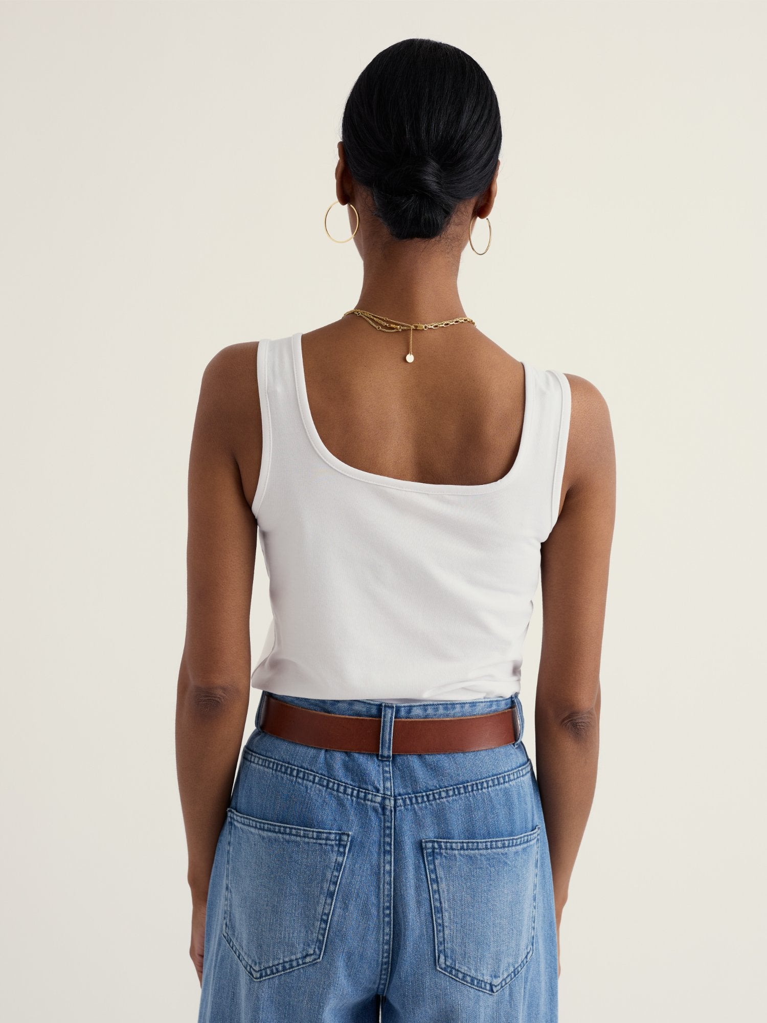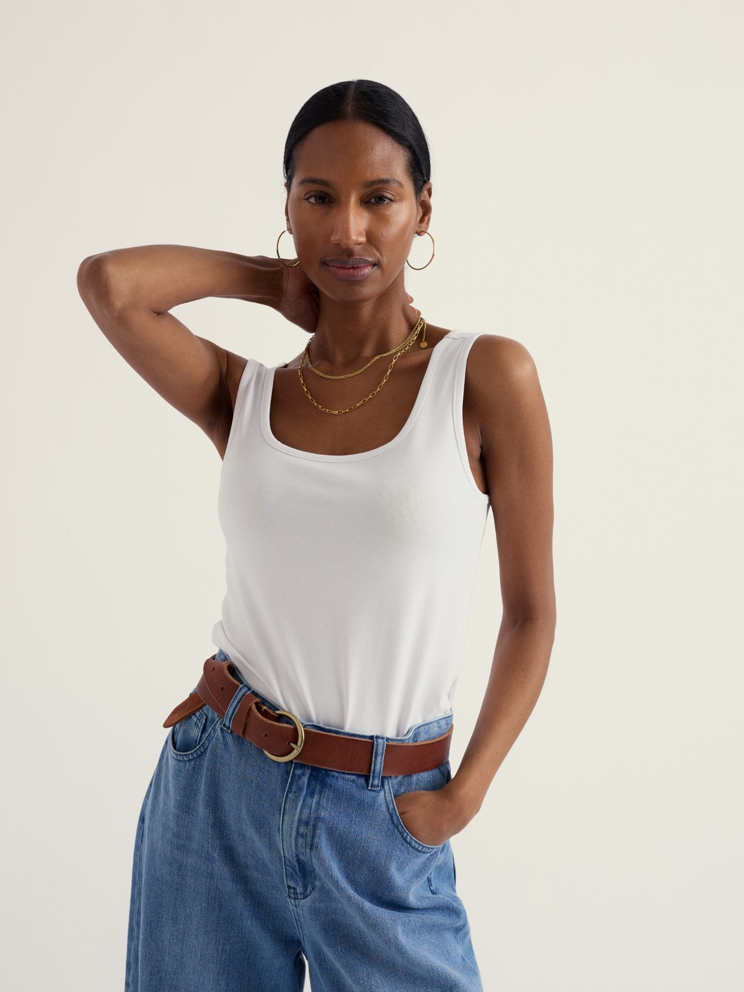 wardrobe must-have, crafted from GOTS-certified organic cotton jersey with a touch stretch. Our Mabe Vest has a clean, fitted shape and a classic square neckline, perfect for wearing solo in the summer or layering in cooler seasons.