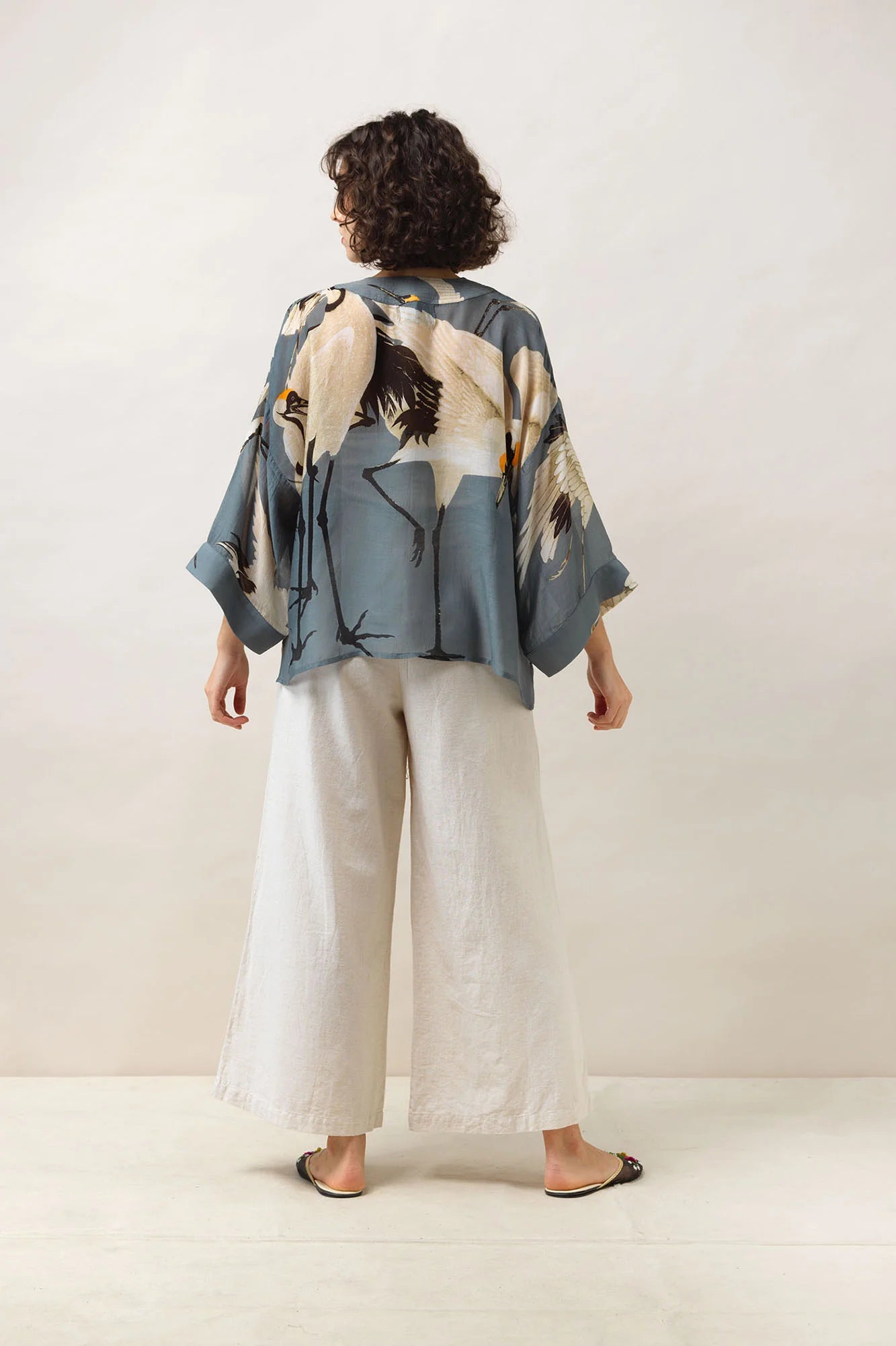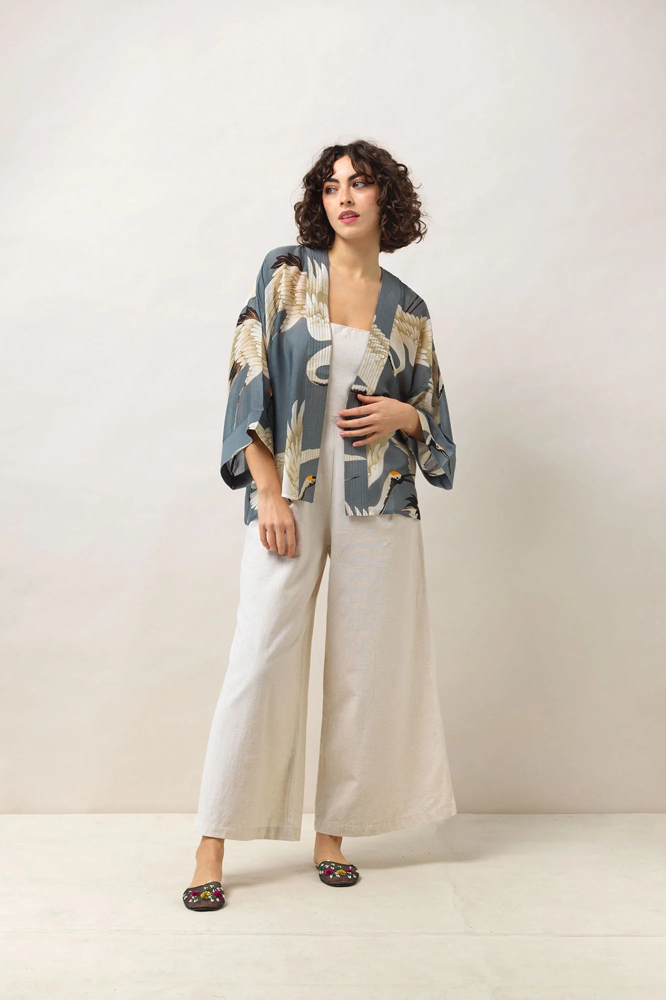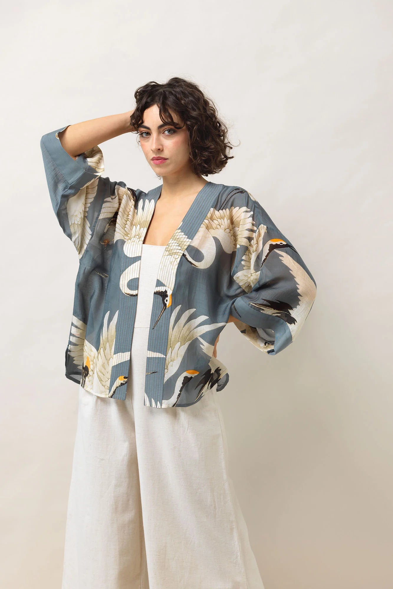 Storks and cranes have been a major art deco trend in both fashion and interiors and this Stork Slate Grey Kimono is perfect for anyone looking for something chic, stylish and in vogue!