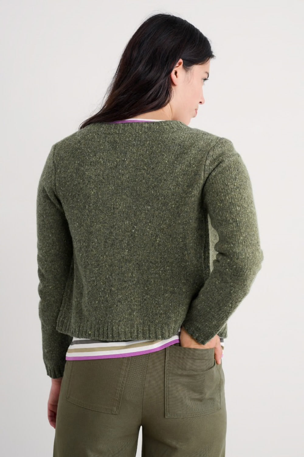 Made from a blend of Merino wool and recycled nylon, our Dawson Pick cardigan is designed to be both extra-soft and long lasting. With a snug 3-gauge knit, the subtly flecked wool is also luxuriously warm to wear. It has a stylish neat fit, with a high crew neck and a button-through front. Ribbed trims at the neckline, cuffs and hem add a classic finish.