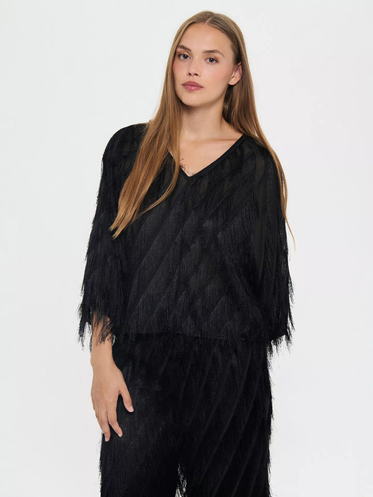 Hannah Knit Sequin Short Sleeve Shirt-Navy