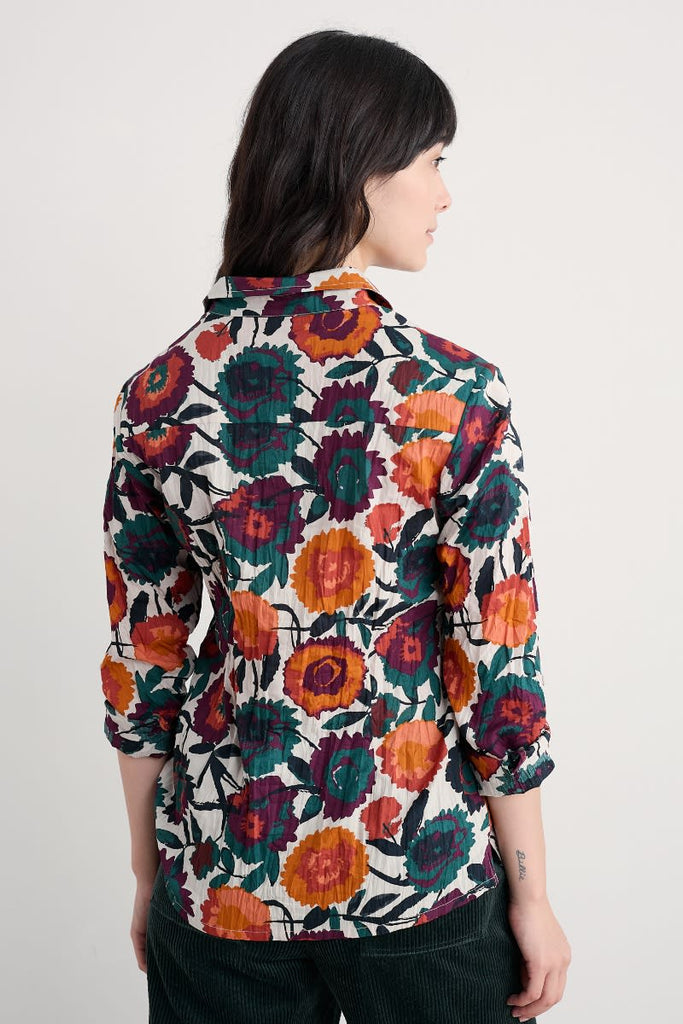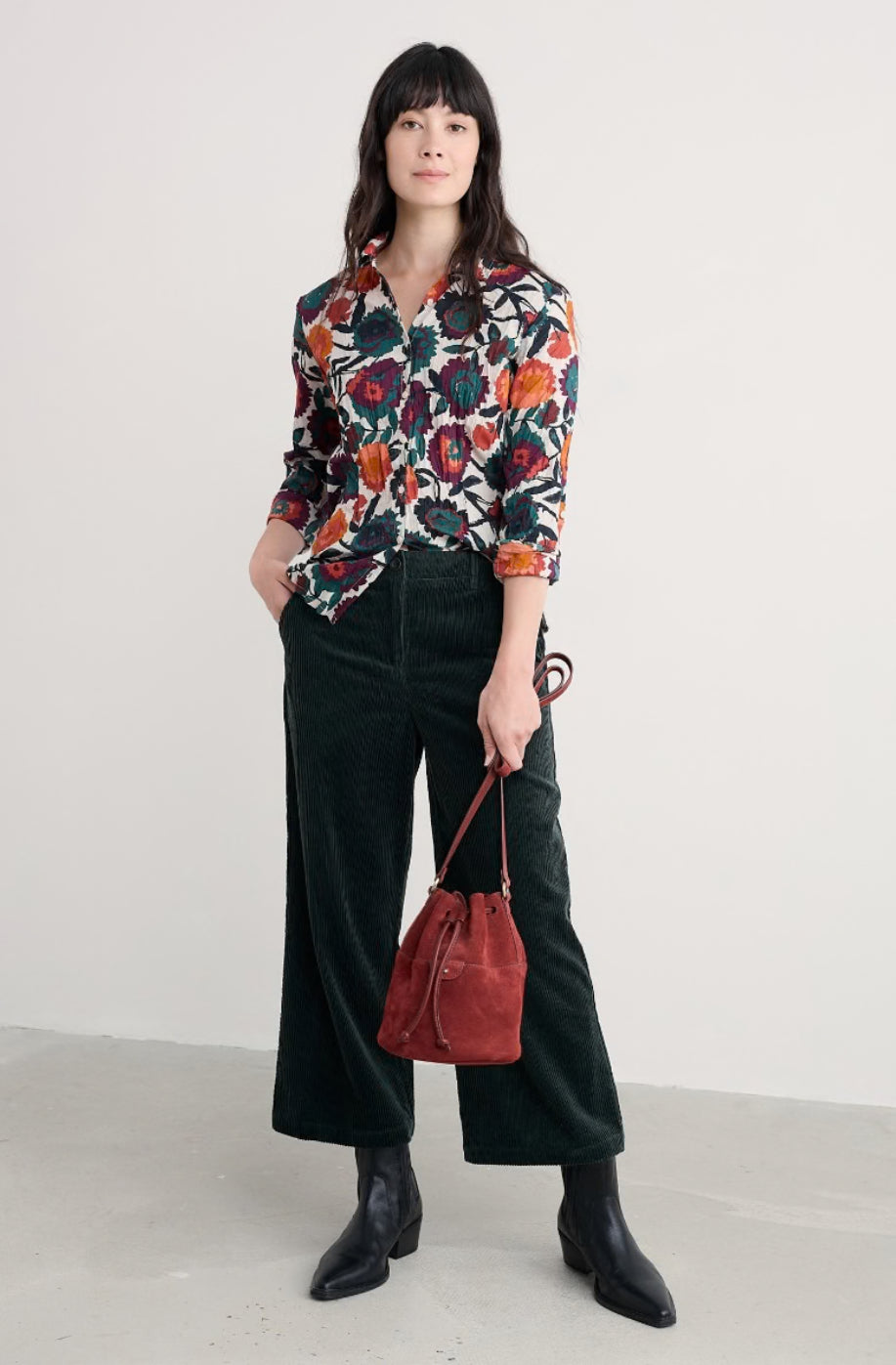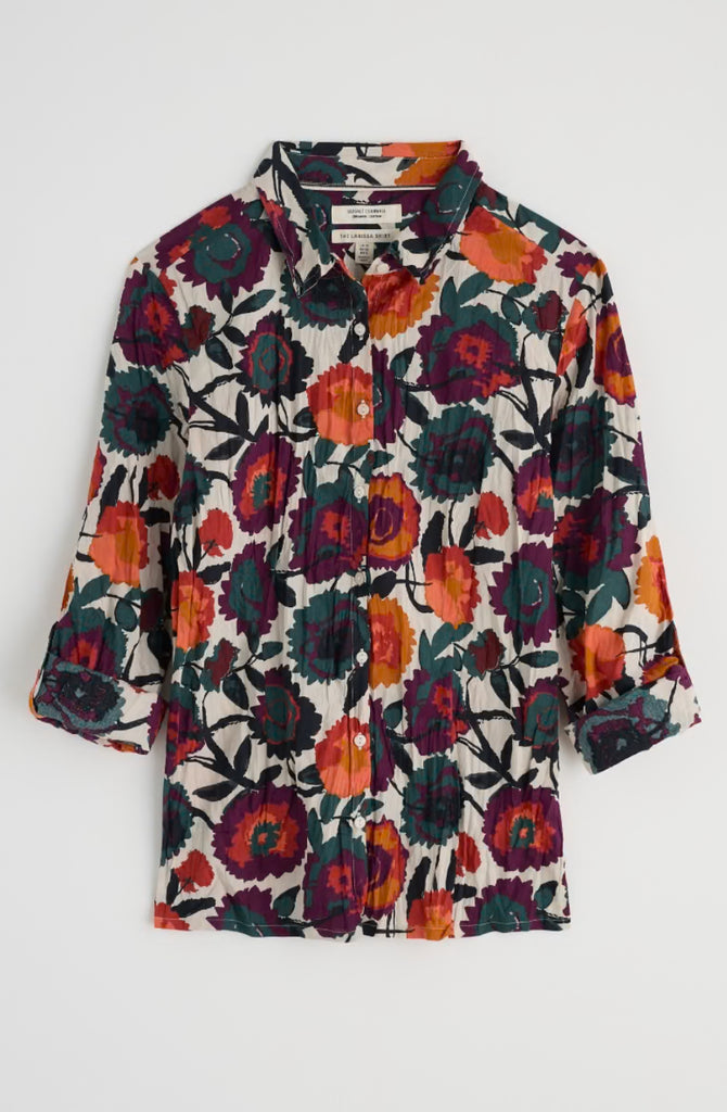 Our Larissa Shirt is a year-round favourite. Made from the softest organic cotton with a casual crinkled appearance, the beauty of this shirt is that it doesn’t need ironing – just wash and twist to keep the crinkle. This semi-fitted style is easy-to-style and comfortable, with long sleeves and button loops so you can roll up the cuffs to change your look. Each season, it showcases some of our most-loved prints, created by our talented textile designers.