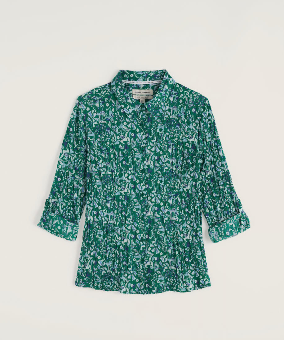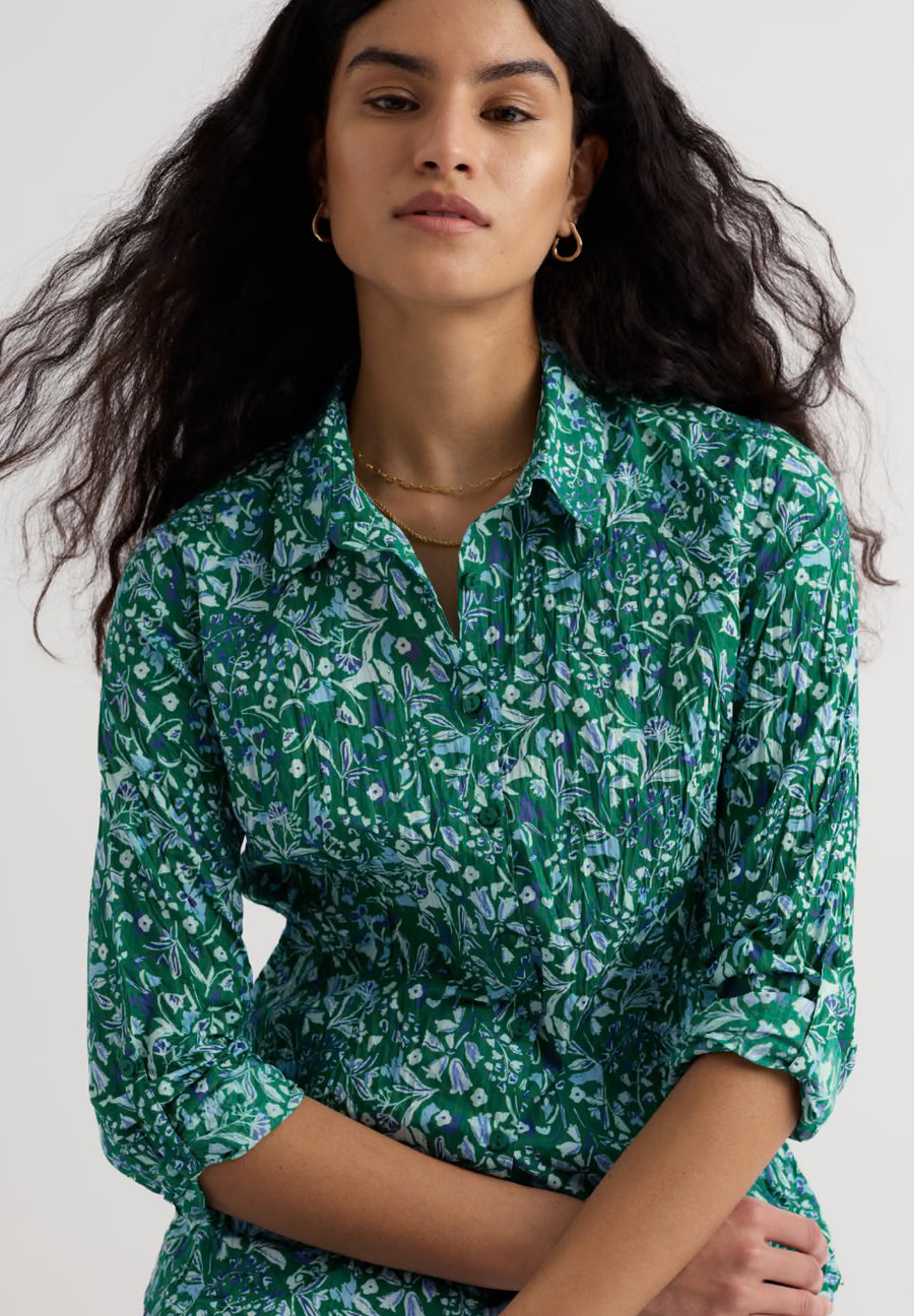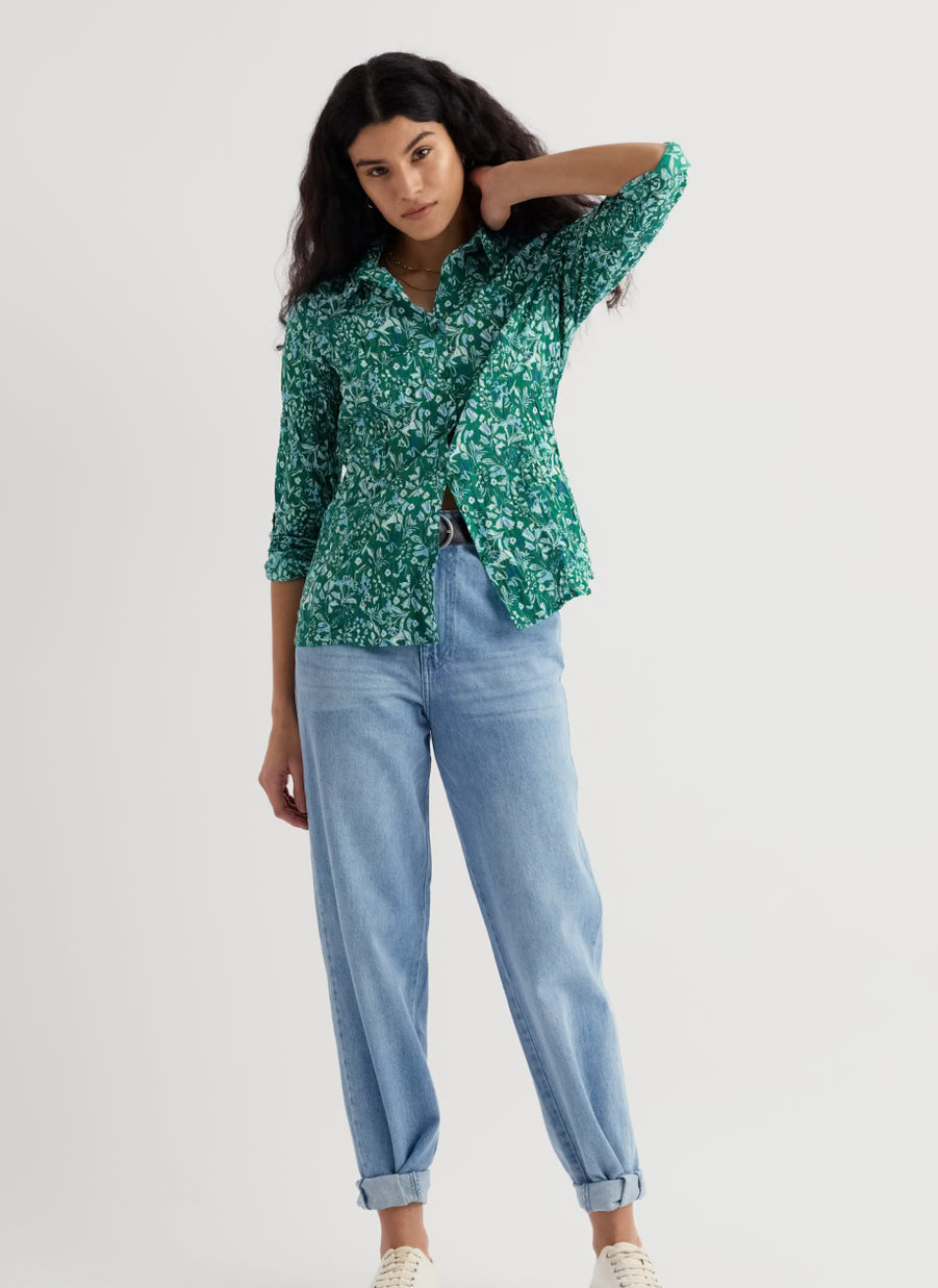 Our Larissa Shirt is a year-round favourite. Made from the softest organic cotton with a casual crinkled appearance, the beauty of this shirt is that it doesn’t need ironing – just wash and twist to keep the crinkle. This semi-fitted style is easy-to-style and comfortable, with long sleeves and button loops so you can roll up the cuffs to change your look. Each season, it showcases some of our most-loved prints, created by our talented textile designers.