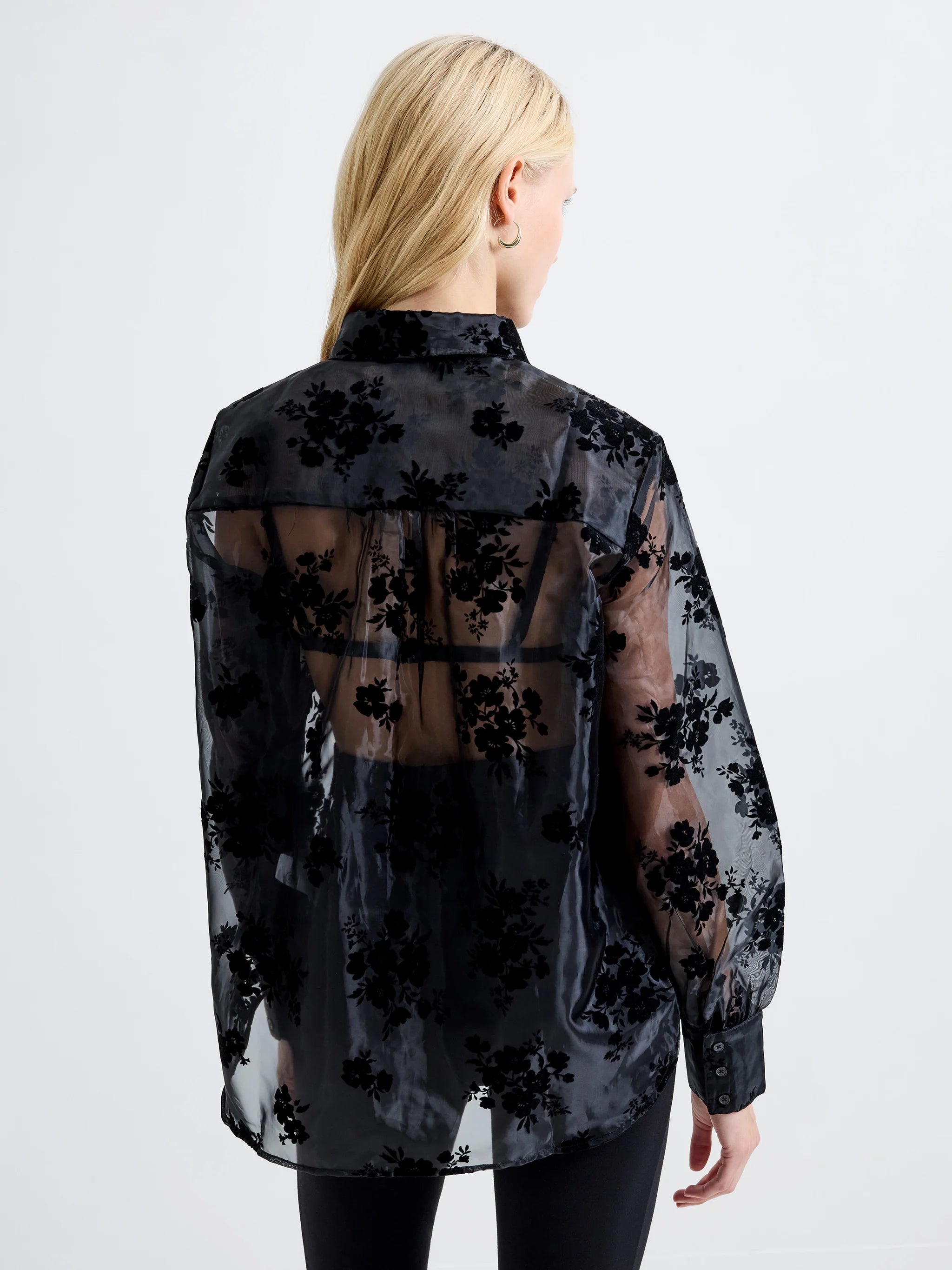 Mika Flocked Organza Floral Long Sleeve Shirt-Black
