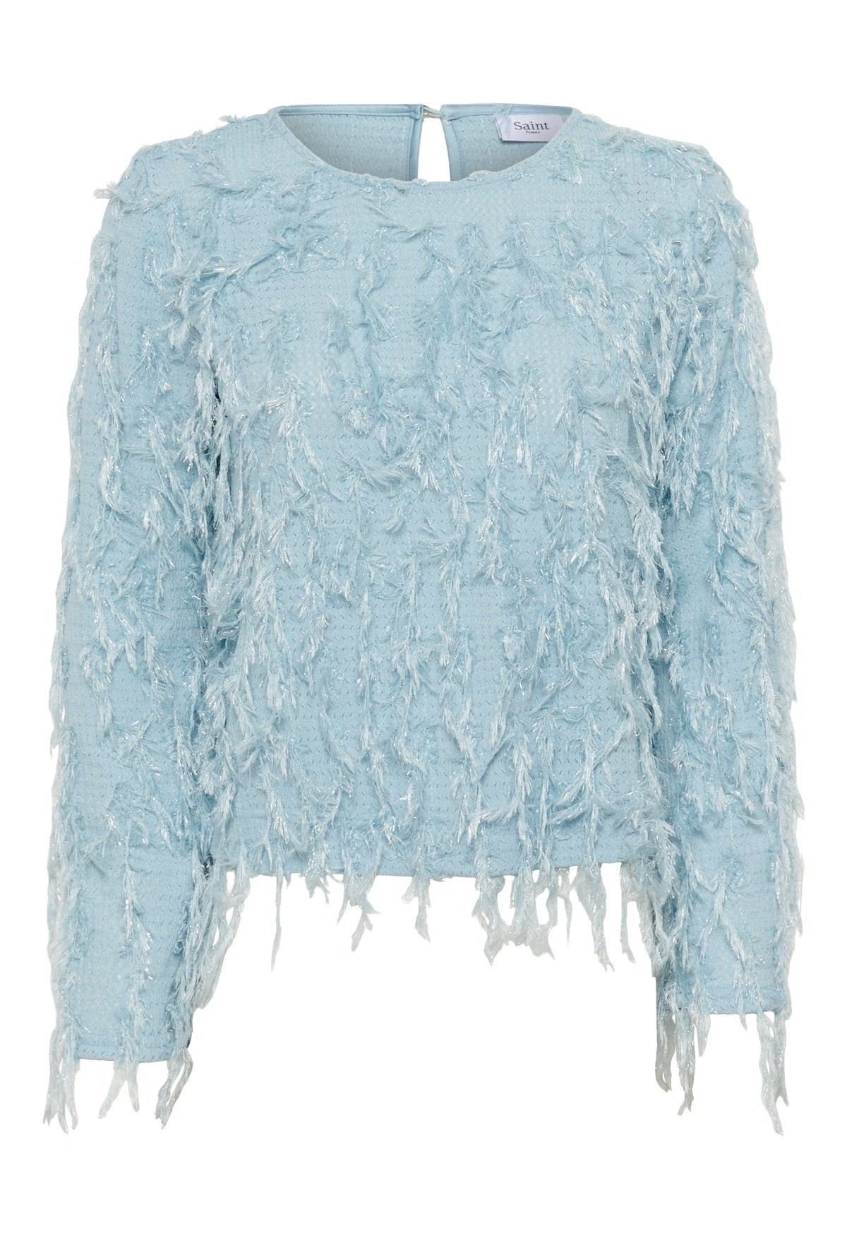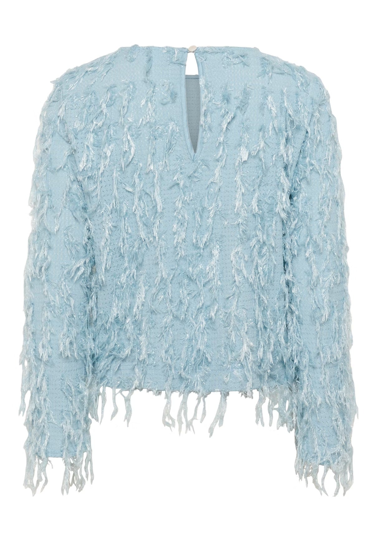 Elevate your wardrobe with this women's blouse featuring a relaxed fit, textured fringe details, classic round neckline, and long sleeves—perfect for both casual and dressy occasions. Designed for comfort and versatile styling.