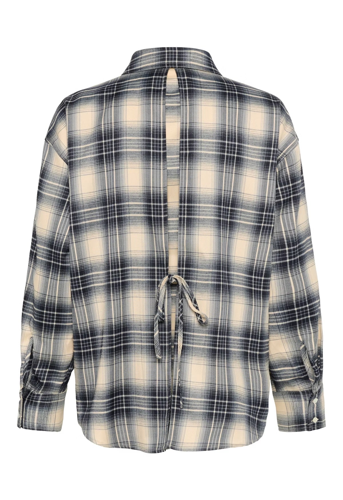 Classic shirt with a modern twist in a soft checked fabric. The relaxed fit and subtle tie detail at the back create a laid-back yet polished look. Model wears size M.