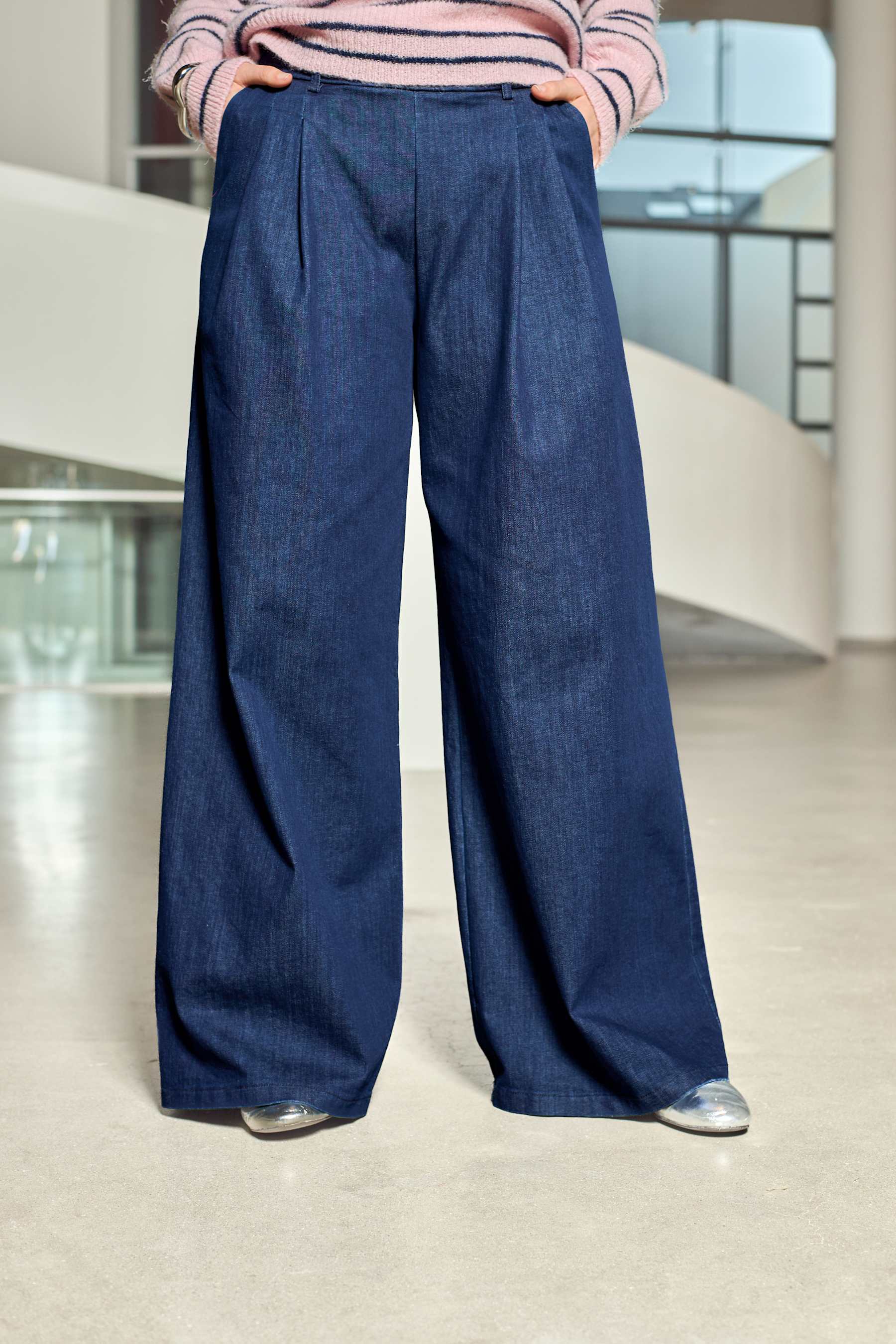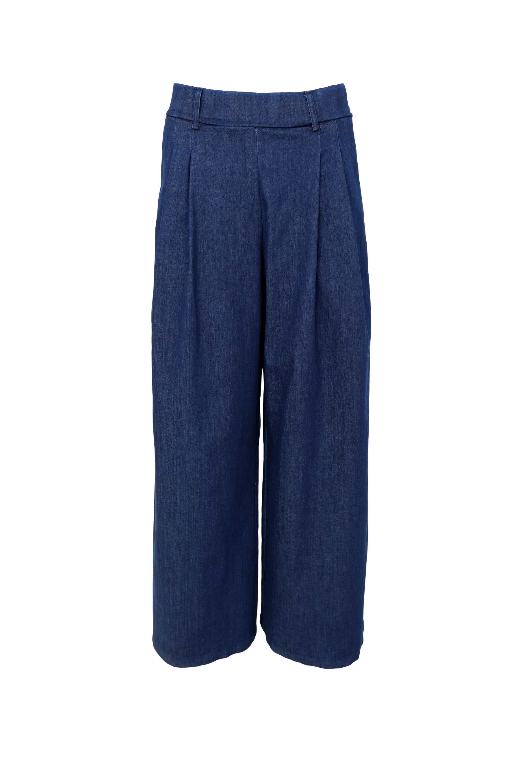 Wide leg pant with pleats in denim. Composition: 91% Cotton, 8% Eme, 1% Elastane
