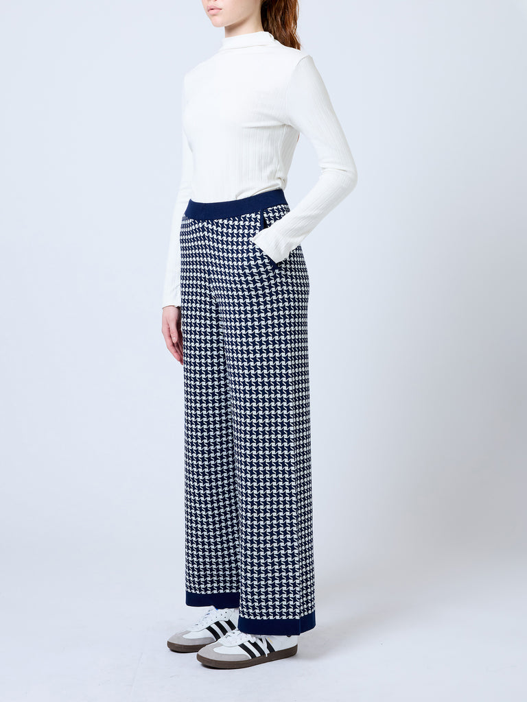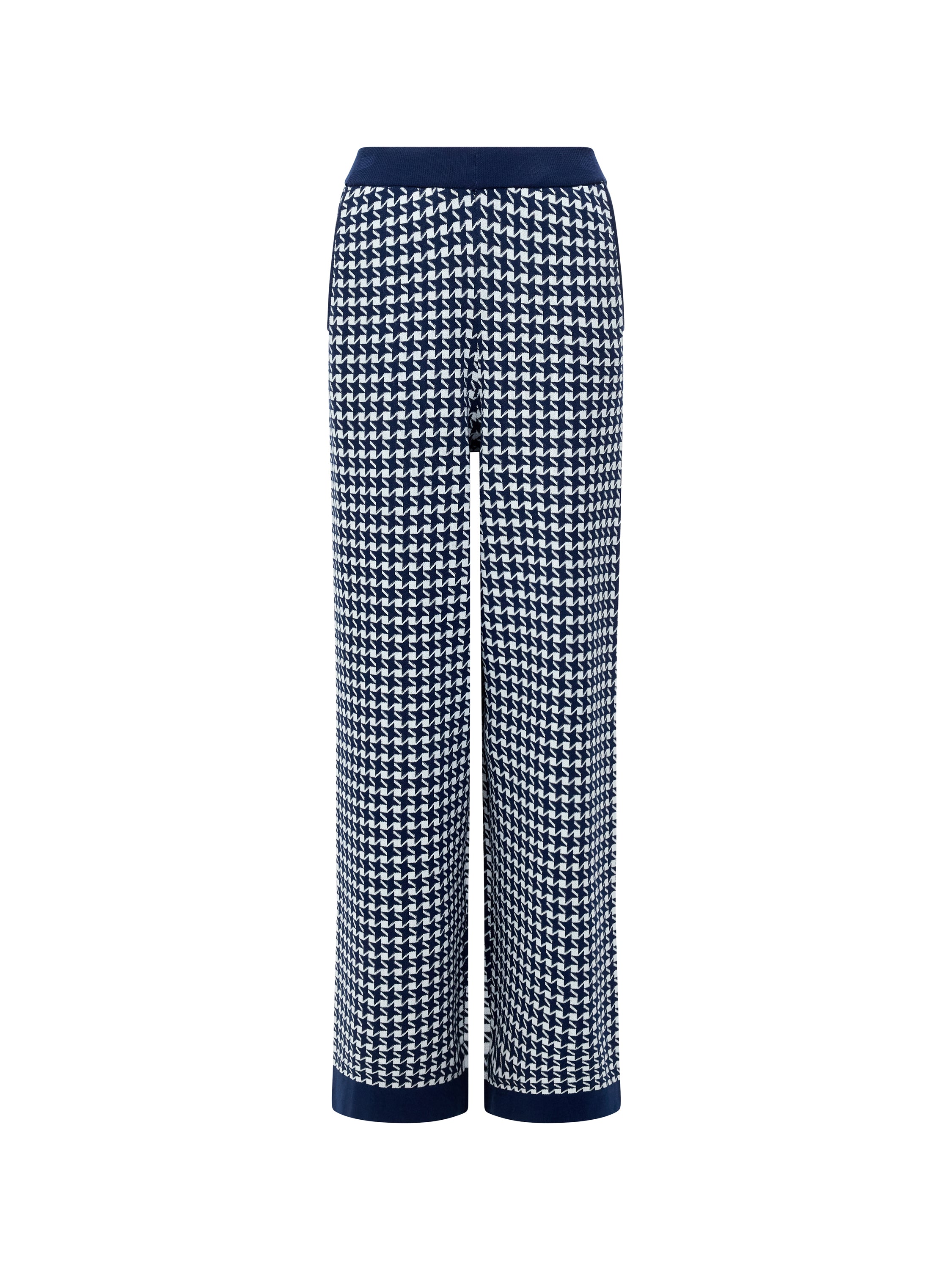 Pattern play the polished way. The Gloria Jacquard Knit Wide Leg Trousers bring a bold geometric design to a wide leg silhouette complete with a ribbed elasticated waistband and cuffs for a standout look with structured comfort.