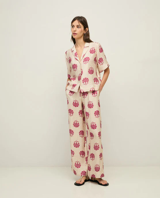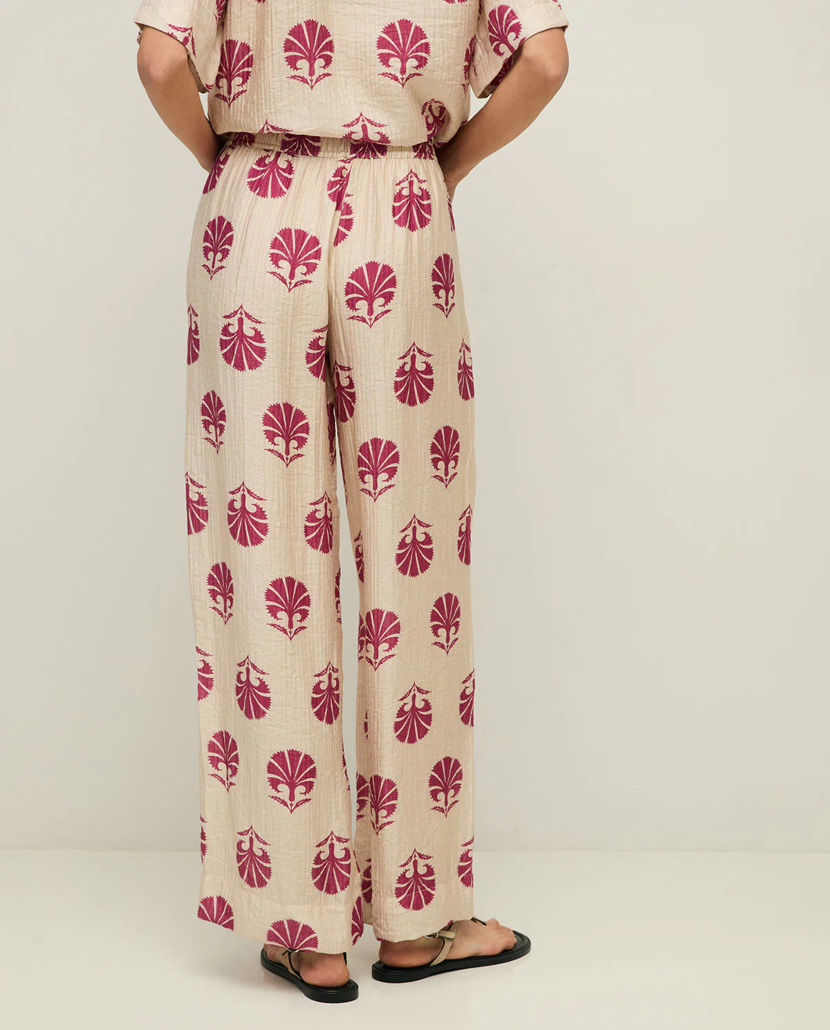 Ruched Effect Wide Trouser - Raspberry