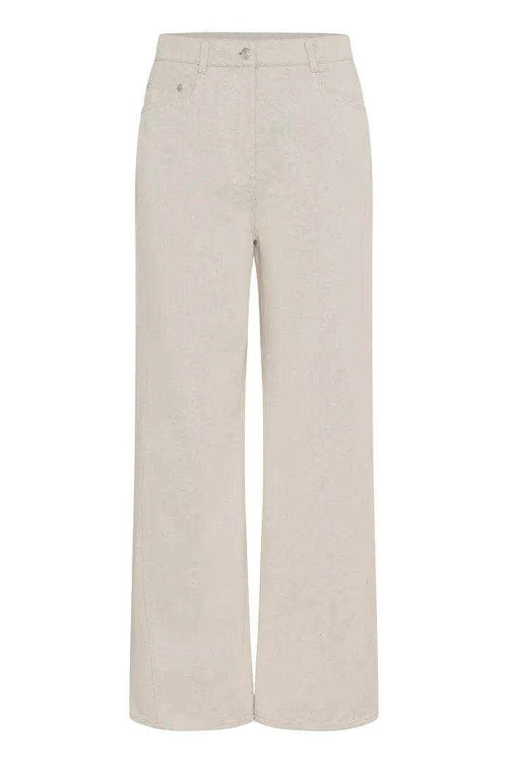 Wide leg jeans offer a modern silhouette with a high-rise waist and full-length fit. Front and back pockets plus belt loops complete the clean, structured style.