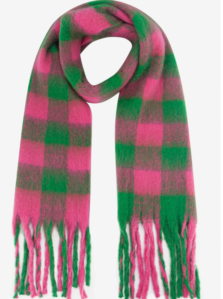 Joey Heavyweight Scarf- Green/pink, Square Check
