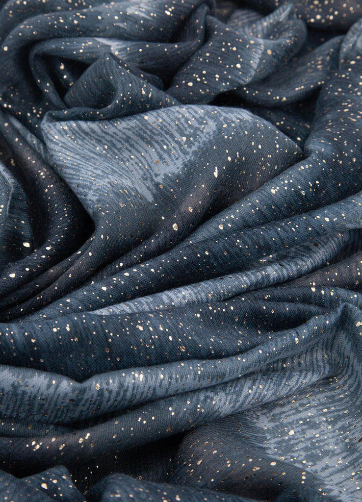 This beautiful lightweight scarf features a striped ombre design with delicate foil speckles. This delightful piece is ideal for pairing with evening attire or for adding a touch of sophistication to a casual outfit